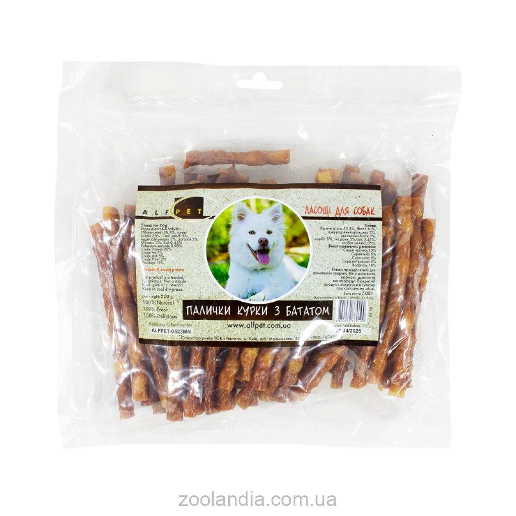 Лакомства для собак AlfPet изготовляются только из натуральных ингредиентов, в состав лакомства входит мясо курицы, утки, кролика, ягненка и говядины.