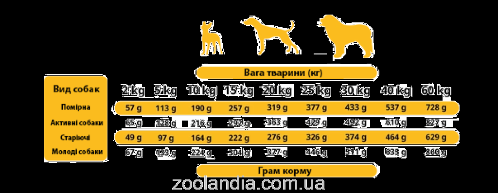 Используйте таблицу по кормлению как ориентировочную и корректируйте дозировку, опираясь на возраст, уровень физической активности, вес и породу.