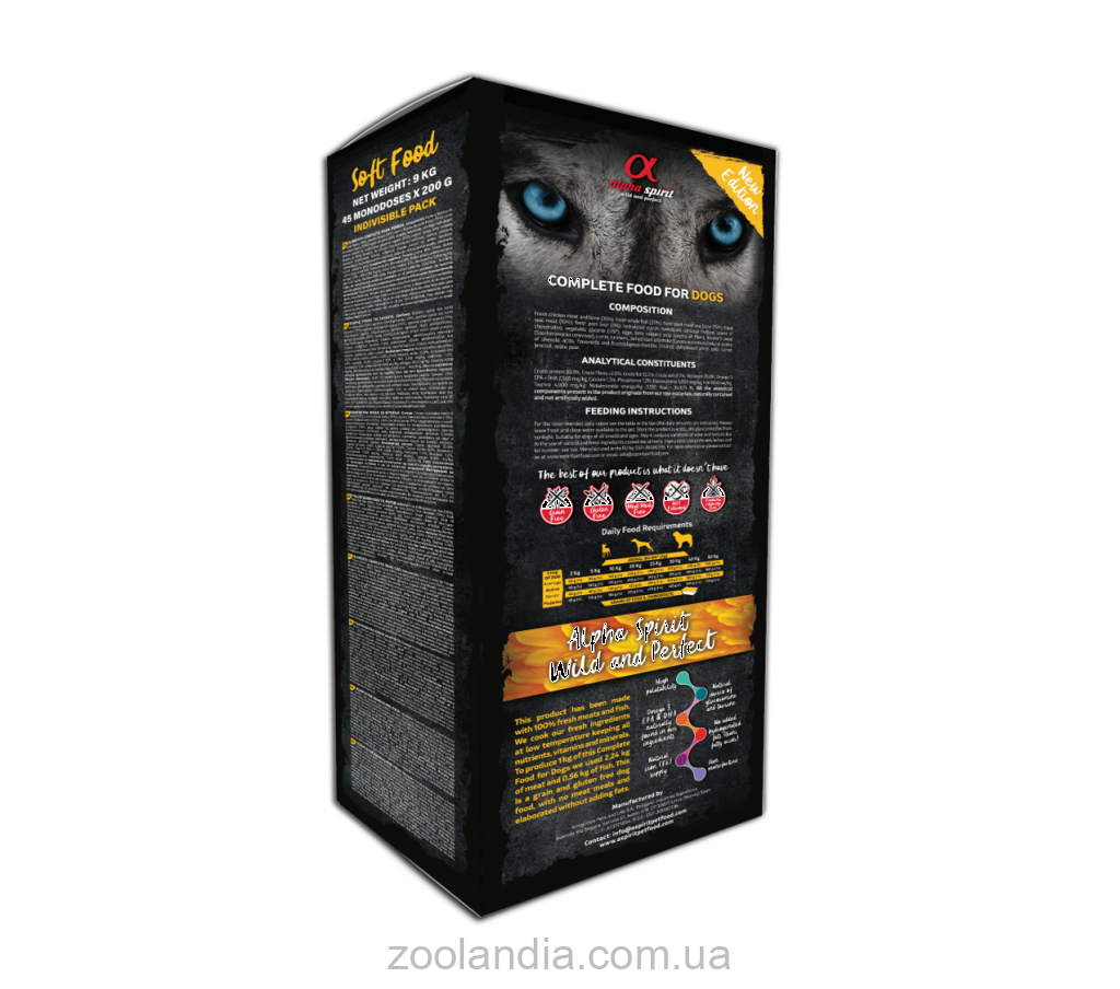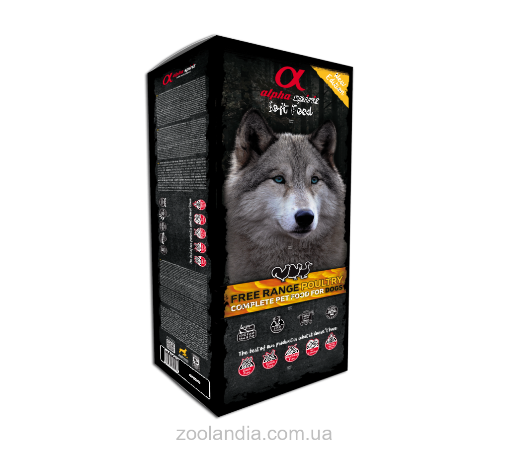 Полувлажные корма Альфа Спирит производятся по особой деликатной технологии Тендерайз (Tenderise), гарантируя, что ингредиенты максимально сохраняют свою питательность природный вкус и аромат. Рацион Alpha Spirit Free Range Poultry не содержит зерна и глютена и отлично подходит собакам, склонным к аллергии и/или пищевой непереносимости. Этот рацион богат природными нутриентами, включая омега-3 жирные кислоты, глюкозамин и неизменные аминокислоты.