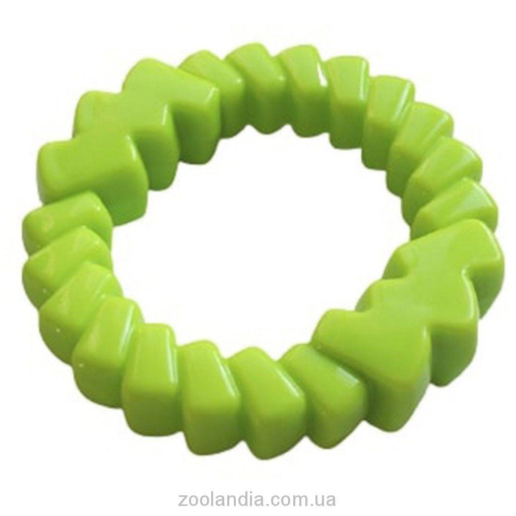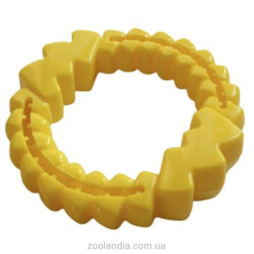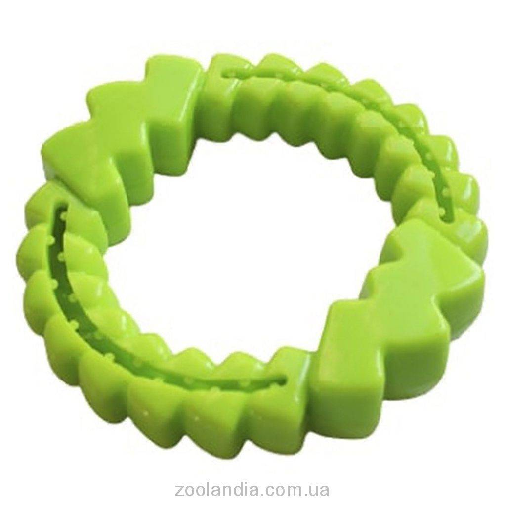 Кольцо от немецкой торговой марки ЭнималАлл помогает снять зуд при естественной замене зубов у щенка, а также станет подспорьем в дрессуре. Аксессуар изготовлен из высокопрочного резинового сплава, что не допускает разгрызание девайса щенком. В специальные углубления игрушки можно поместить любимое лакомство питомца, таким образом, девайс способствует обучению новым навыкам и привитию правильного поведения. Благодаря особому дизайну, игрушка массирует десны любимца. При изготовлении, производитель использует сверхпрочные не токсичные материалы, поэтому аксессуар подойдет песикам любой породы и возраста.