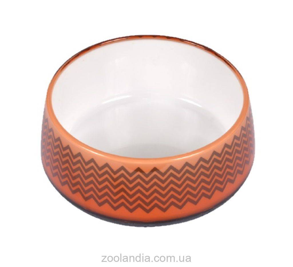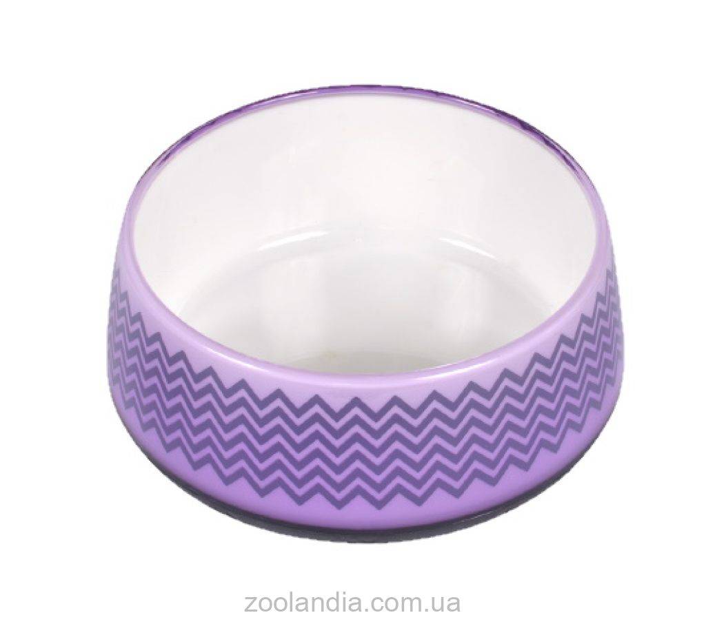 Пластмассовая миска из высококачественного пластика. Уплотненное дно из резины не дает скользить и передвигать животному во время еды миску. А увлекательный узор подойдет под любой инерьер.