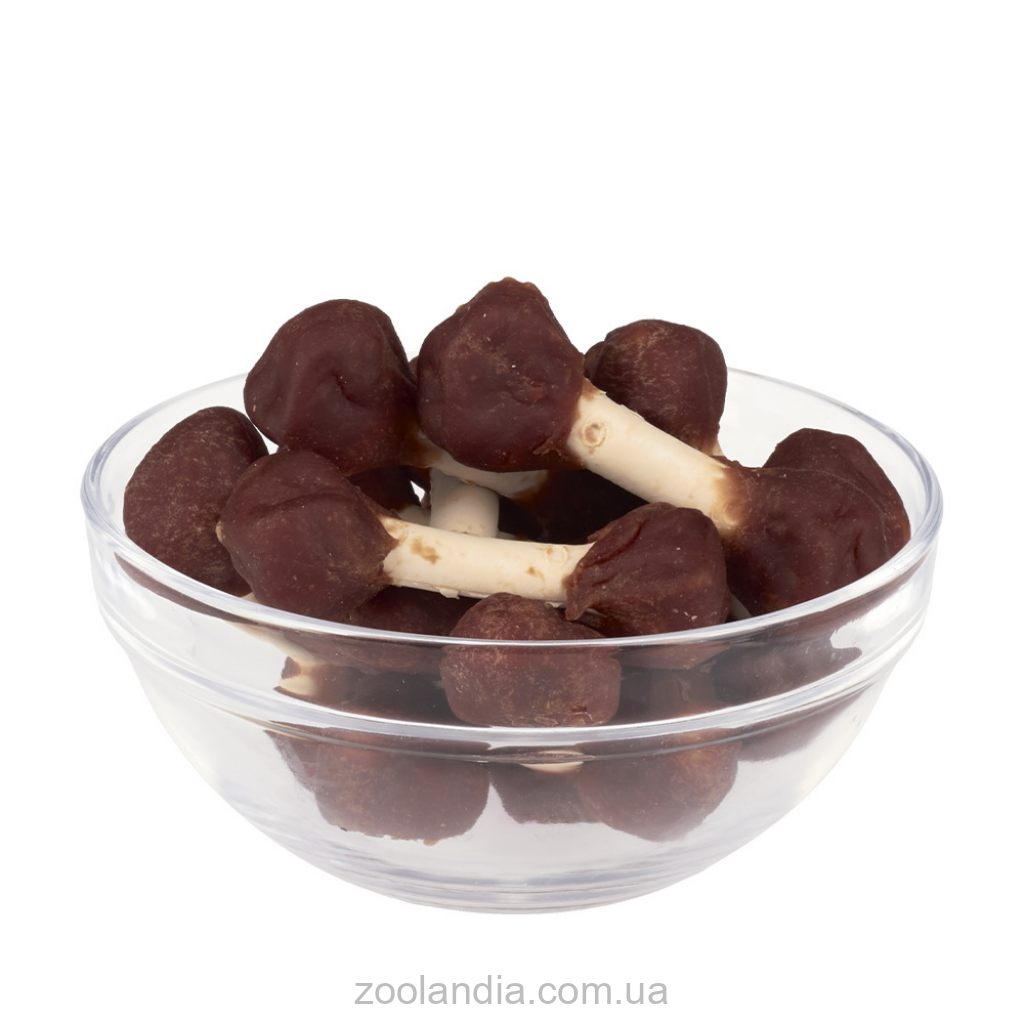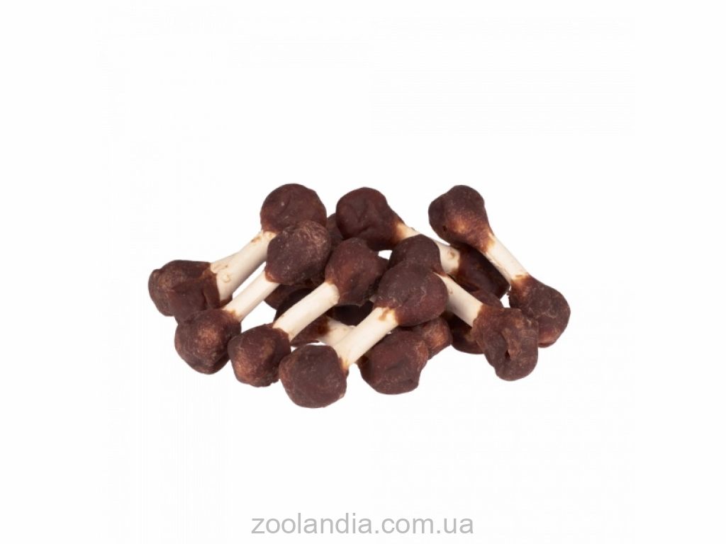 куриный фарш: 53.68%, куриное филе 9.06%, крахмал кукурузный 8,94%, кукурузная мука 8,94%, глиценрин пищевой 8,94%, утиное филе 4,35%, сорбит пищевой 2,69%, г 0,45%, другие добавки 0,81%, аромат 0,36% Кальциевая косточка 50,17%; куриный фарш 28,67%; крахмал кукурузный 5,38%; утиное филе 4,00%; куриное филе 3,38%; сорбит пищевой 2,06%; кукурузная мука 1,79%; гороховая мука 1,79%; глицерин пищевой 1,08%; глютен пшеничный 1,08%; соль пищевая – 0,22%; прочие добавки 0,38%.