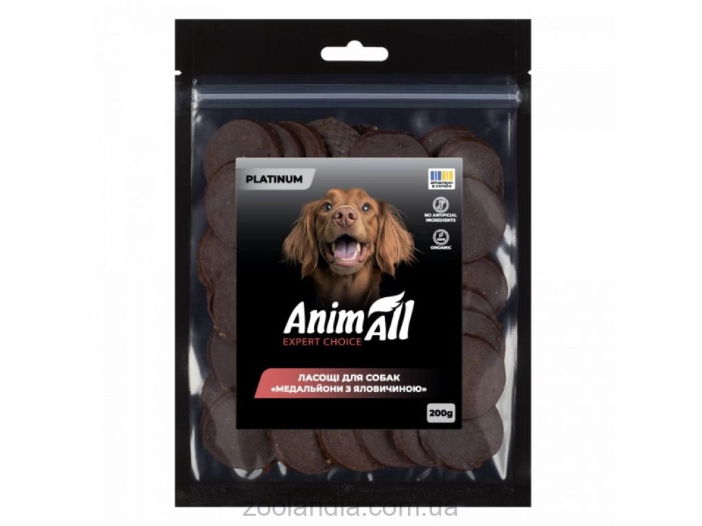 AnimAll PLATINUM Лакомство для собак Медальоны с говядиной. При изготовлении лакомства AnimAll PLATINUM используется специальная технология сушки, которая сохраняет все необходимые витамины и минералы, которые важны для поддержания иммунитета и здоровья собак.