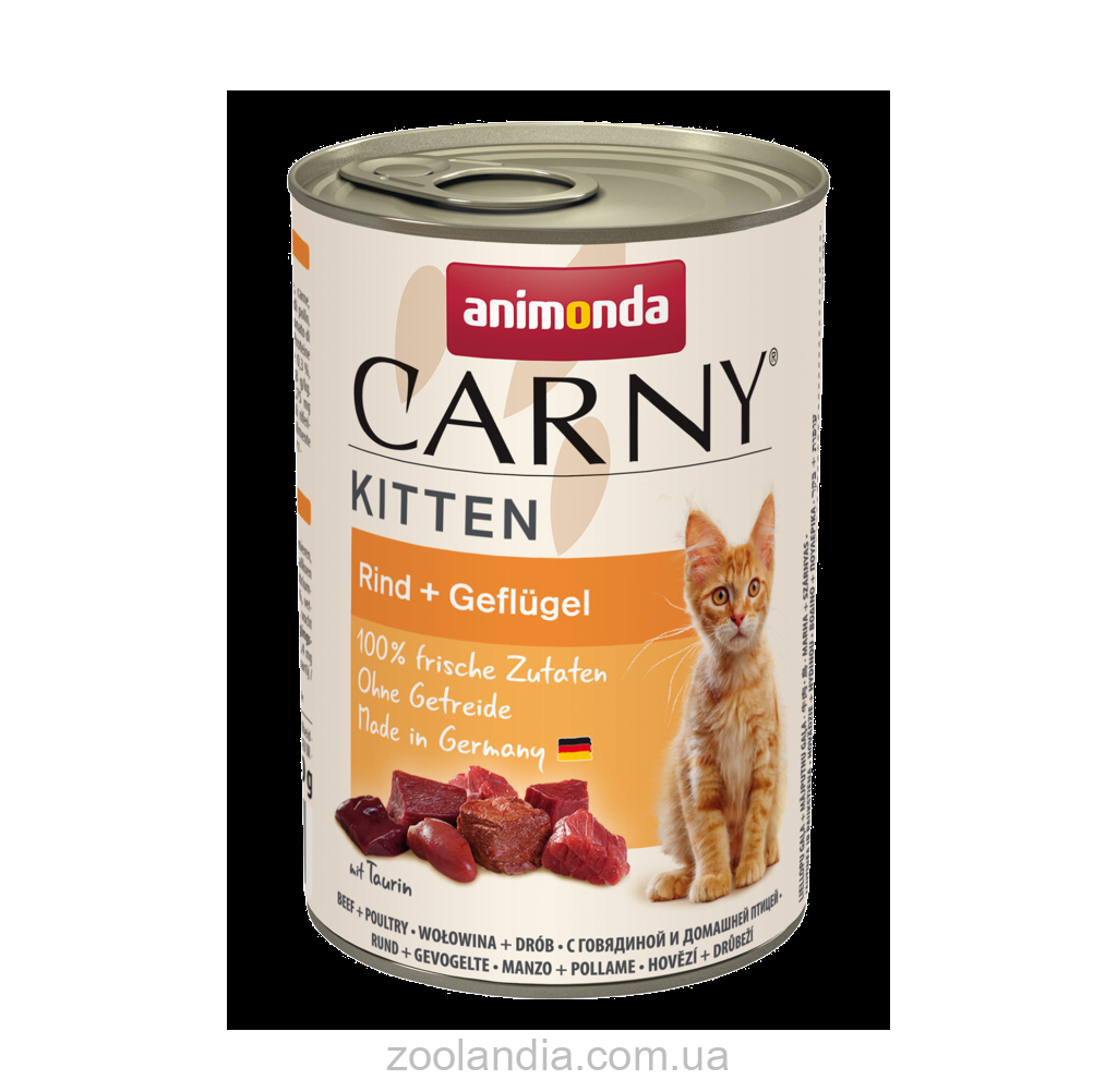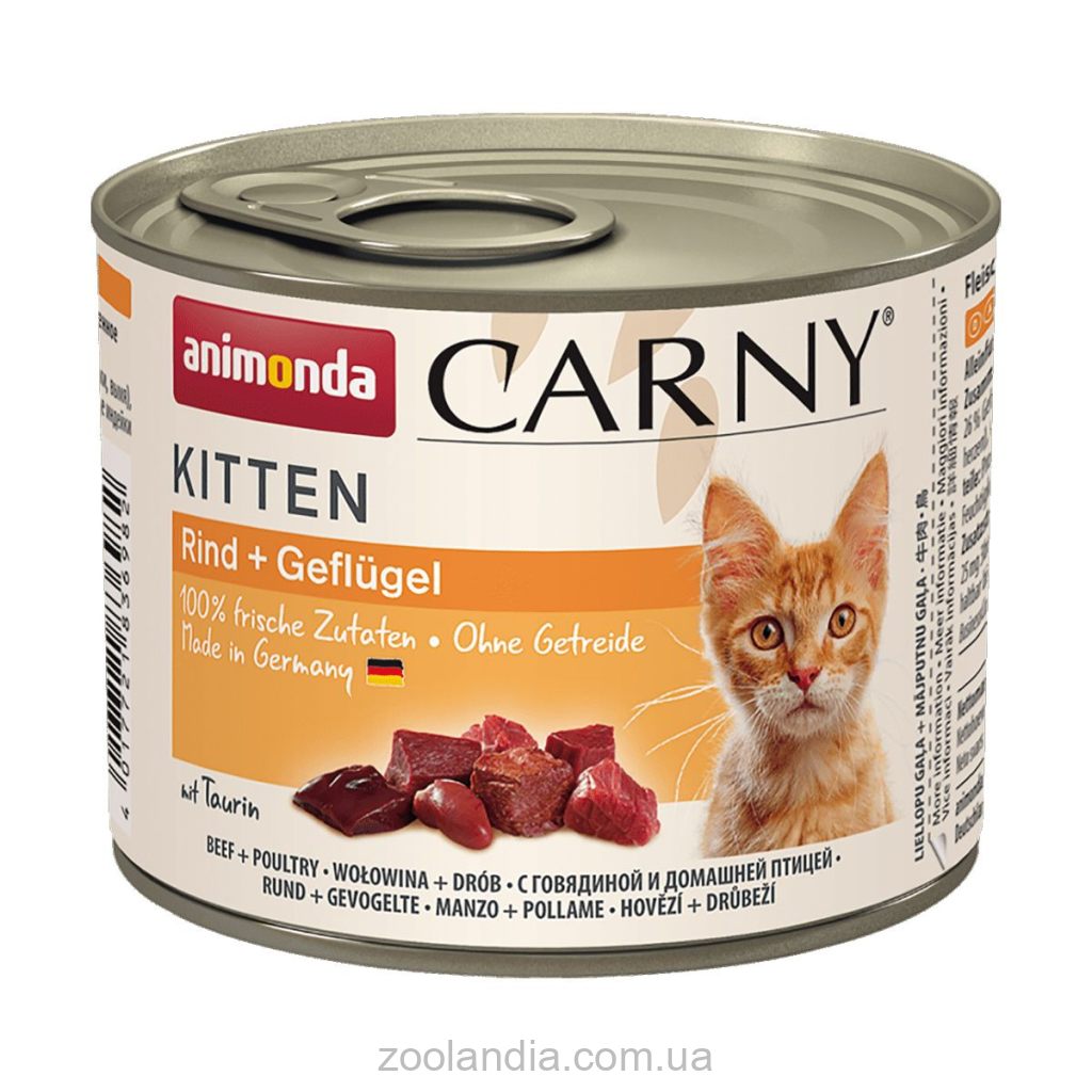 Carny Kitten Poultry + Beef – полнорационный влажный корм для котят, оптимально адаптированный к потребностям организма любимцев первого года жизни. Carny Kitten Poultry + Beef обеспечивает котят всеми питательными веществами, в которых они нуждаются ежедневно, в течение этой чувствительной фазы роста. Нежное птичье мясо и сытная говядина обеспечивают неповторимый вкус для котят.