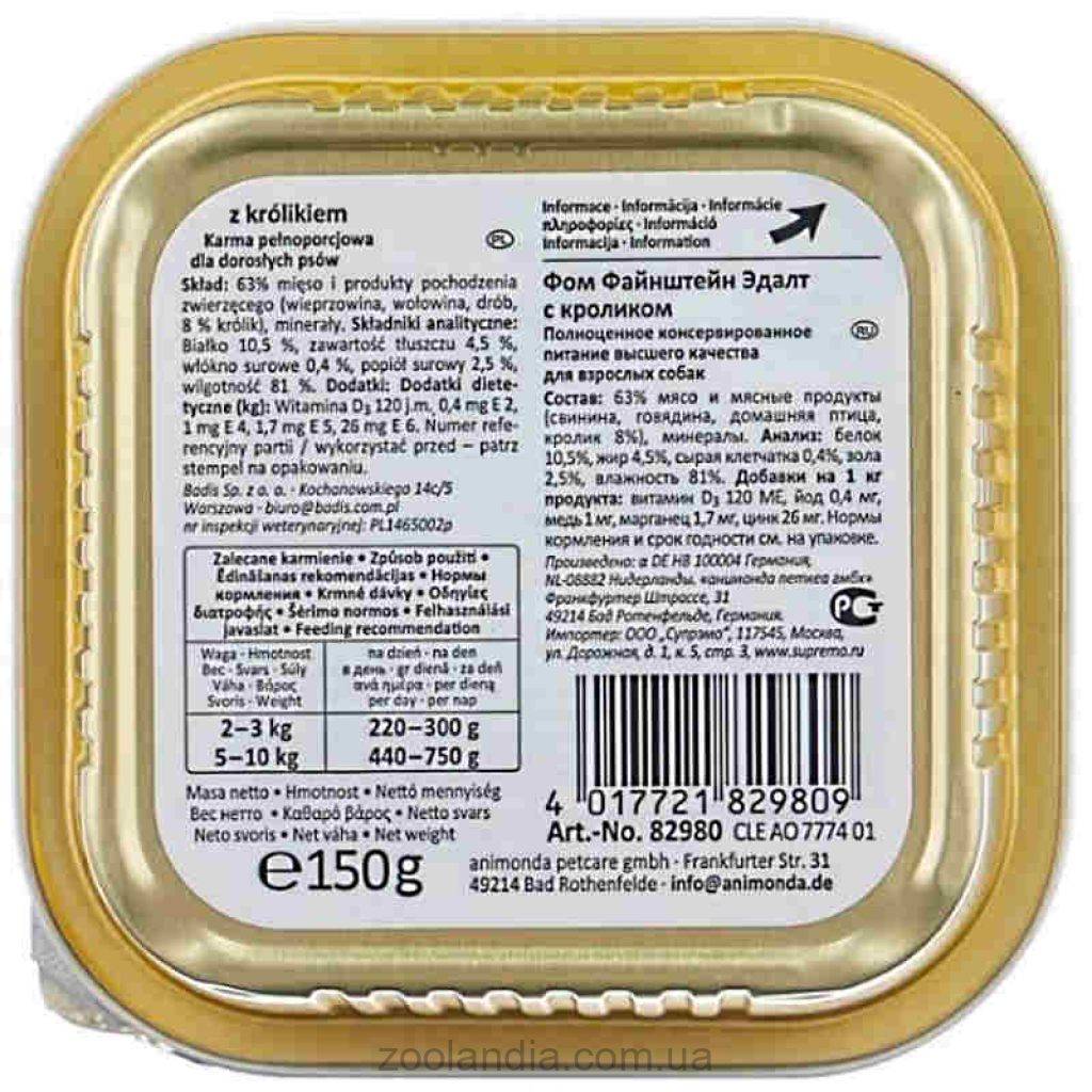 Vom Feinsten Adult with Rabbit влажный корм, который создан, чтобы удовлетворять гастрономические предпочтения привередливых собак. Паштет с мелкими кусочками мяса кролика приготовлен из отборных ингредиентов. Он дарит особые моменты удовольствия от еды!