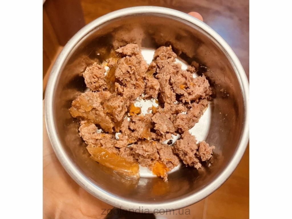 Индейка 53% (сердца, мясо, желудки, печень, шеи), бульон из индейки 28,85%, кролик 15%, морковь 2%, минералы 1%, Фруктоолигосахариды (ФОС) 0,1%, лососевое масло 0,05%.