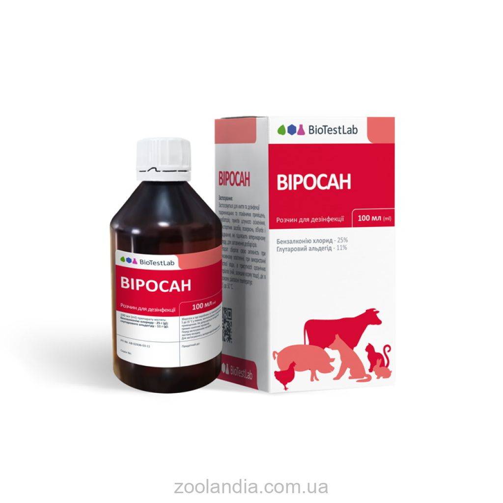 Виросан - комплексное моюще-дезинфицирующее средство, действует бактерицидно (Staphylococcus aureus, Streptococcus faecalis, Pseudomonas aeruginosa, E.coli, Klebsiella pneumoniae, Proteus mirabilis, Listeria monocytogenes, Mycoplasma spp.), фунгицидно (Candida spp., Aspergillus spp., Fusarium spp., Penicillium spp.), вирулицидно (Newcastledisease virus, Reovirus, Rotavirus, Coronavirus, Paramyxovirus, Poxvirus, Orthomyxovirus, Pestivirus) и другие бактерии и вирусы.