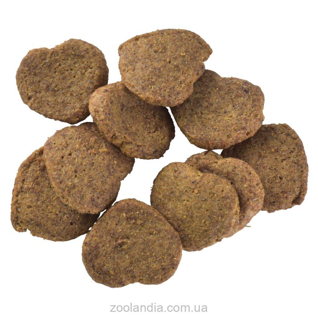 Гарантированный анализ: сырой протеин 34,0 %, сырой жир 17,0 %, сырая зола 5,9 %, сырая клетчатка 1,5 %, влажность 10,0 %, кальций 0,9 %, фосфор 0,7 %, натрий 0,3 %, магний 0,1 %, омега-3 0,85 %, омега-6 1,20 %. Содержит антиокислители, утверждённые в ЕС: токоферольные экстракты из растительных масел 1b306 i, аскорбил пальмитат 1b304 и экстракт розмарина.