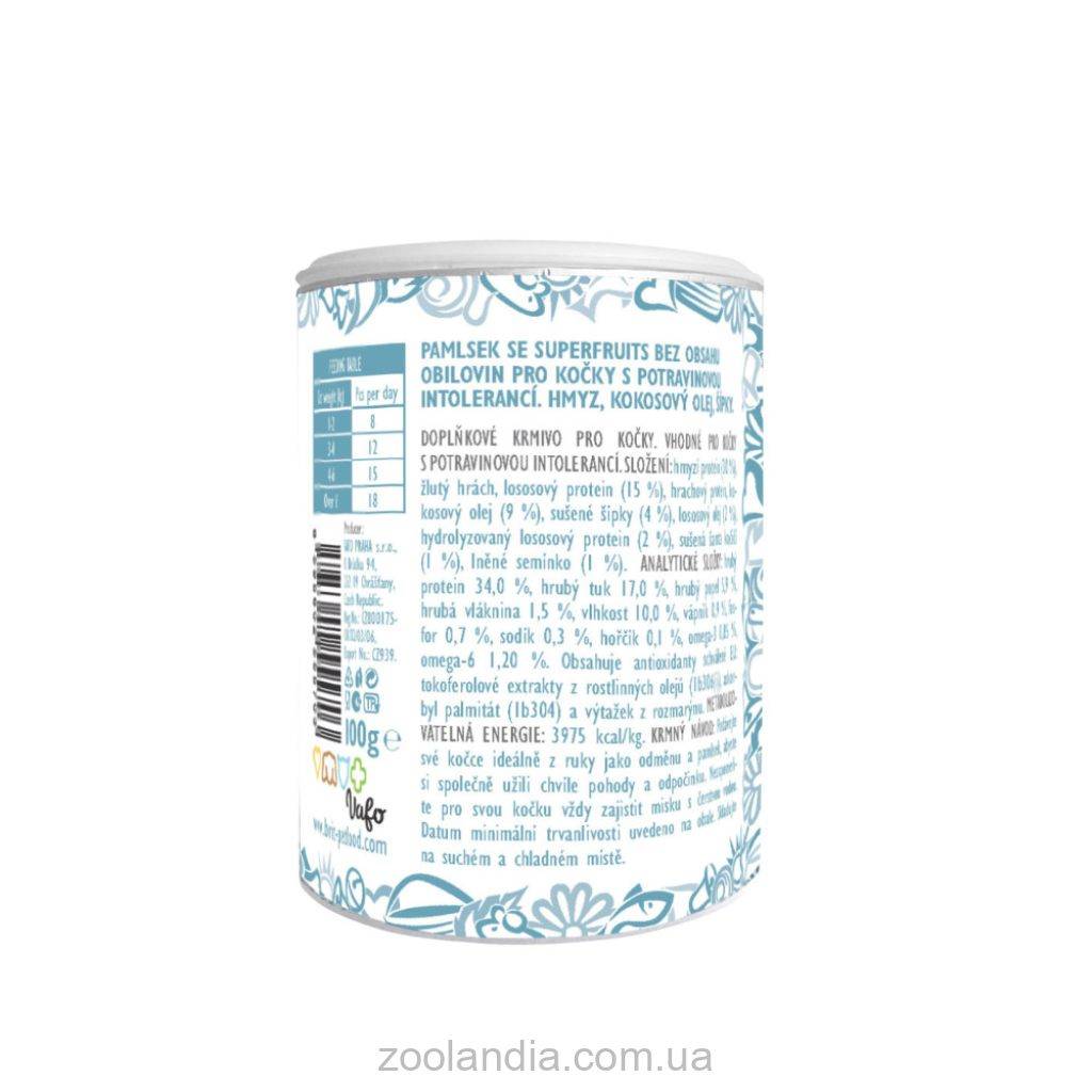 Лакомства с насекомыми и шиповником для кошек с пищевой непереносимостью.
