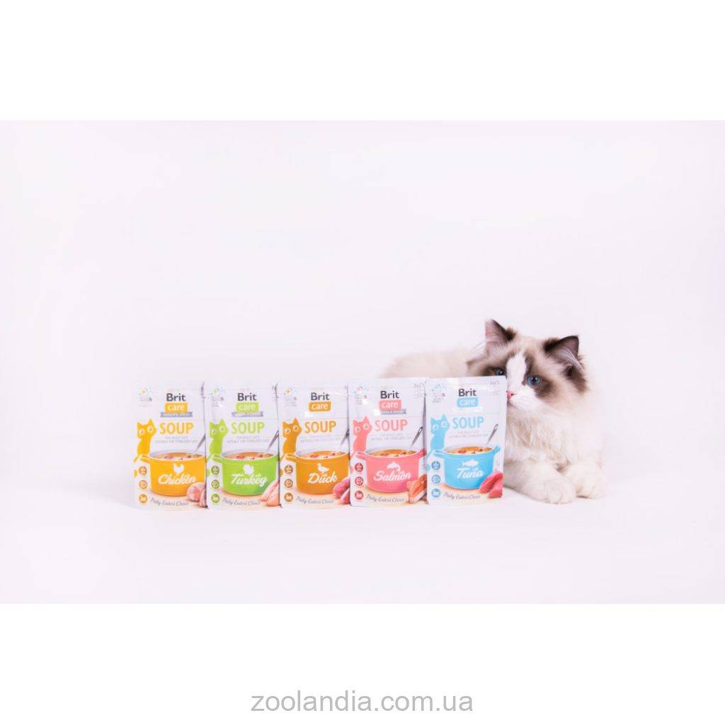 В идеале кошки должны выпивать около 50 мл жидкости на 1 кг массы тела ежедневно. Новый корм-суп Brit Care Cat – это отличный способ повысить потребление воды питомцем, что будет способствовать здоровью его мочевыводящих путей. Также это прекрасное разнообразие рациона вашего котика.