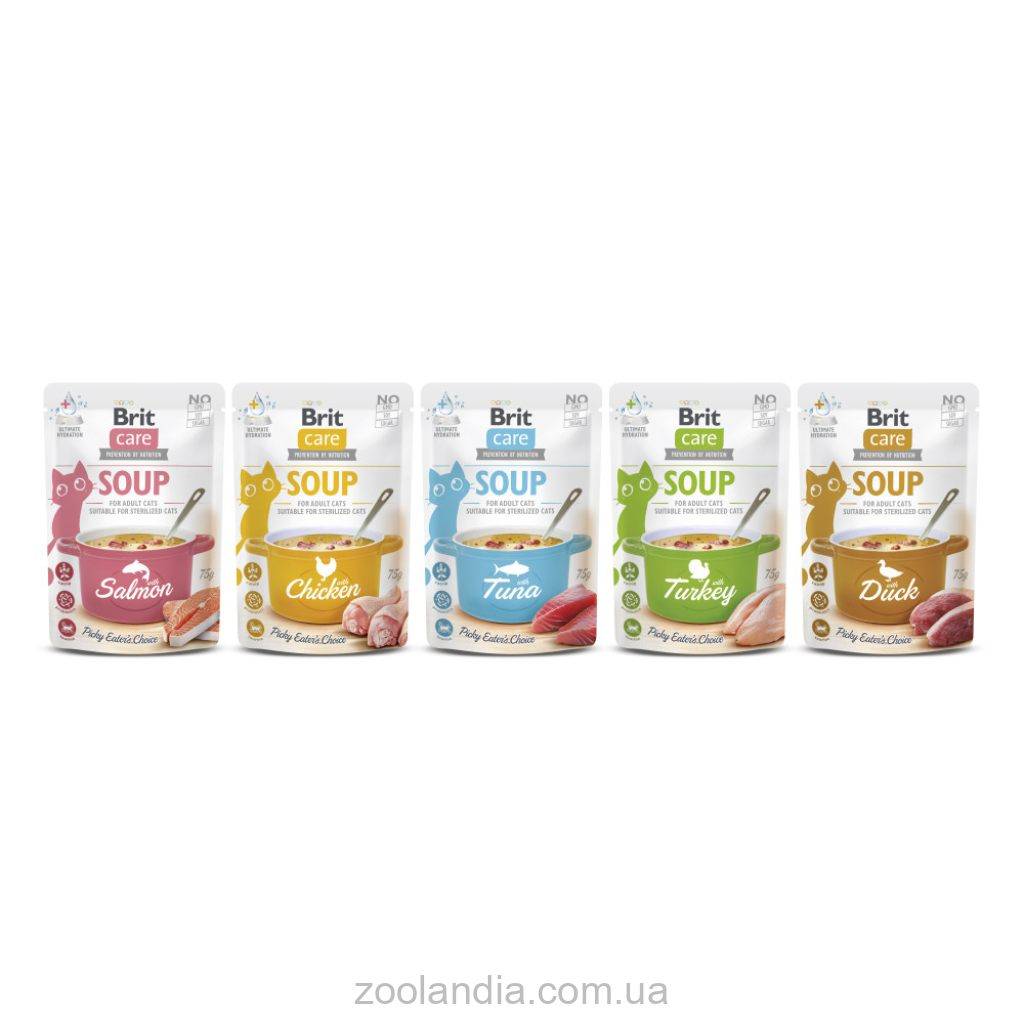Дополнительный влажный беззерновой корм "Суп с индейкой для взрослых кошек". Подходит для кастрированных кошек.
