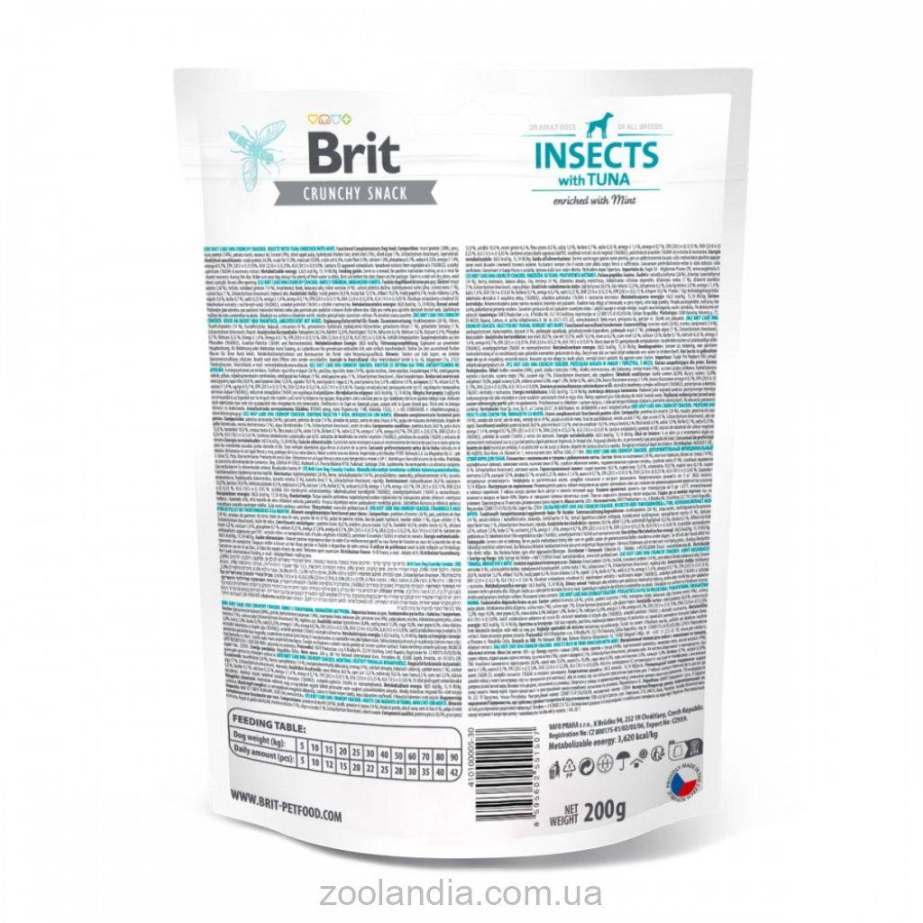 Функциональный дополнительный корм с белком насекомых, тунцом и мятой для собак. Хрустящие и аппетитные рыбки подарят вашему питомцу наслаждение вкусом и позаботятся о его свежем дыхании.