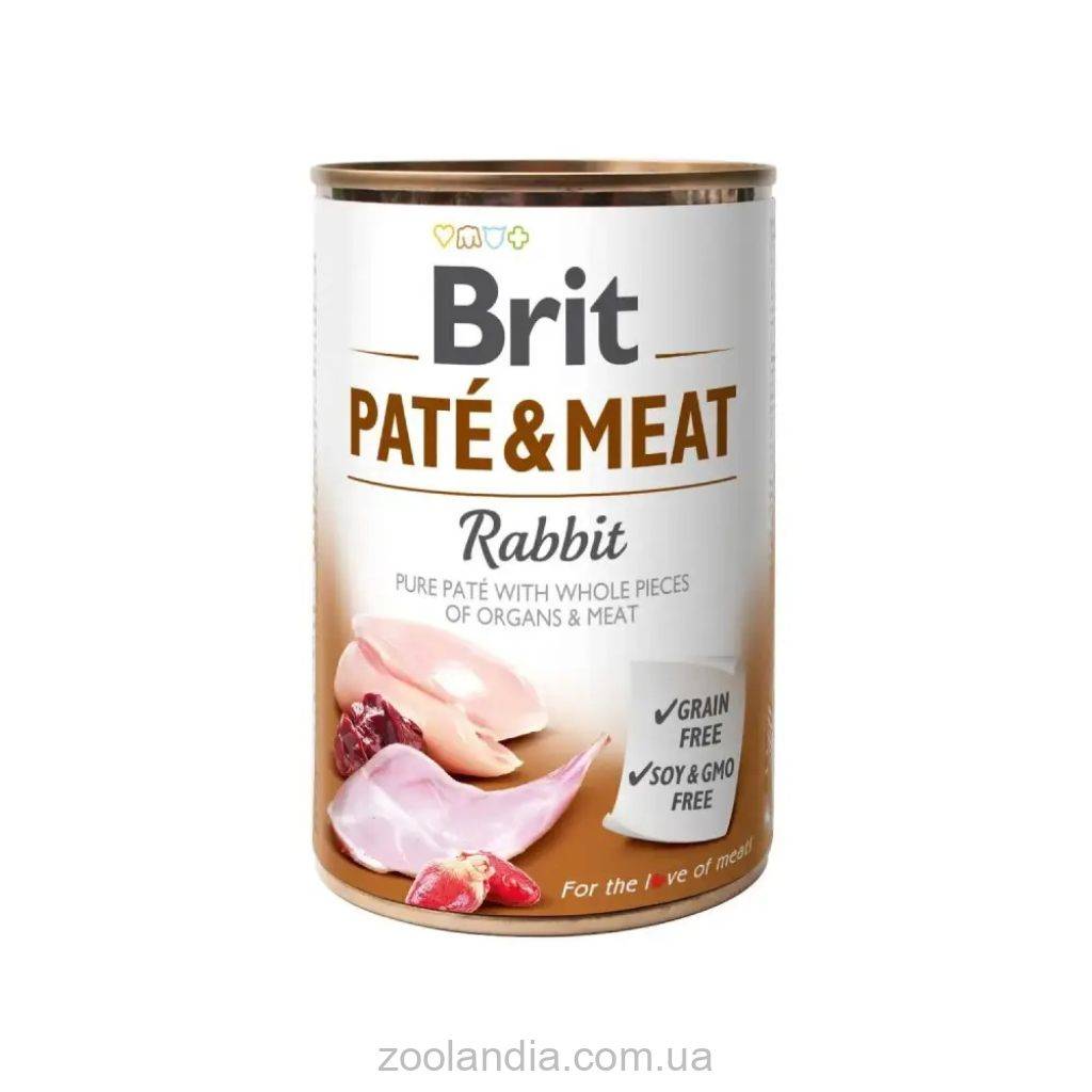 • Влажный корм Brit Care Pate&Meat для собак, с кроликом, 400 г (1 шт.). Состав: 44% курица (мясо и субпродукты), 26% кролик (мясо и субпродукты), 3% горохового крахмала, 1% горохового волокна, 0,5% лососевое масло.