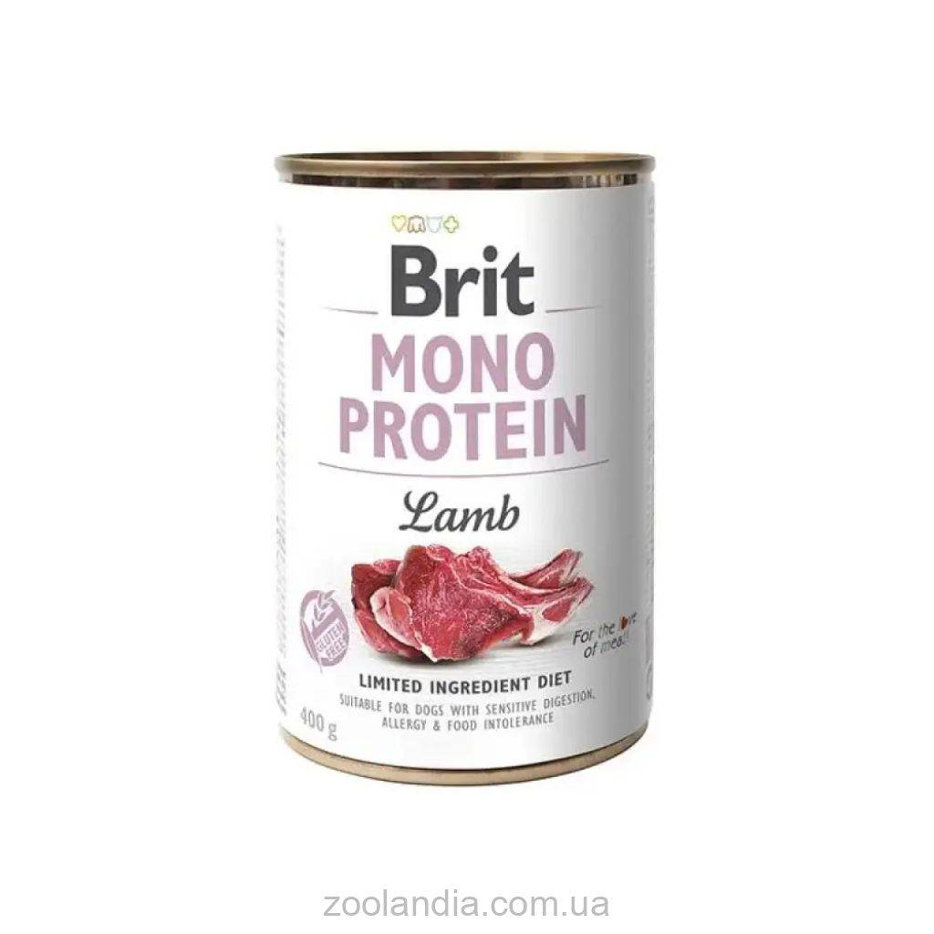 • Влажный корм Brit Mono Protein Lamb для собак, с ягнятиной, 400 г (1 шт.). Состав: 74% ягненка (мясо, субпродукты), 3% гороховый крахмал, 1% гороховая клетчатка.