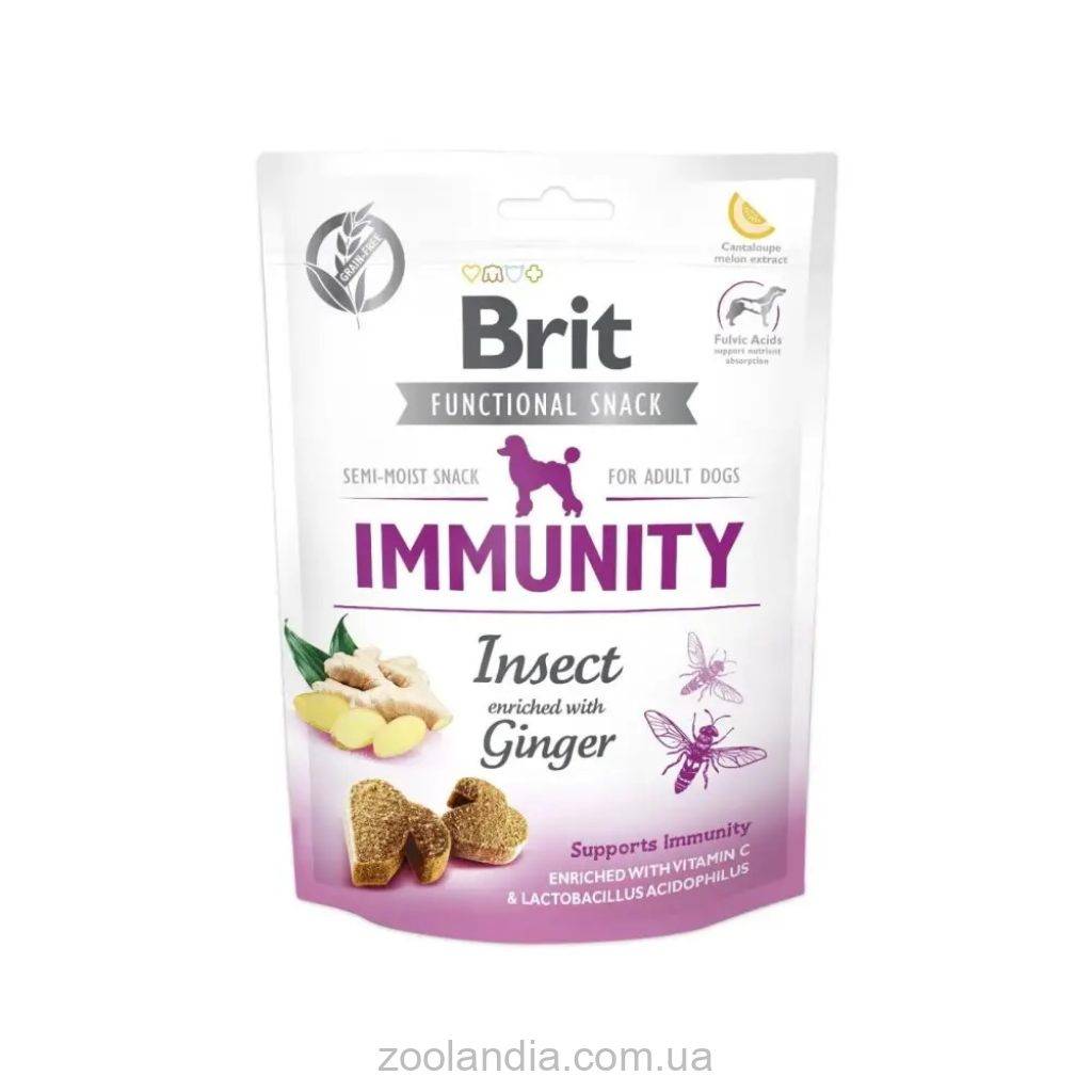• Функциональное лакомство Brit Care Immunity насекомого с имбирем для собак, 150 г (1 шт.). Состав: дегидрированные насекомые (26%), тыква (20%), красная чечевица (15%), растительный крахмал жидкий (14%), протеин* из лосося (10%), соус* из лосося (5%), коллаген ( 4 %), пивные дрожжи (2 %), сушеный имбирь (1 %), масло лосося (1 %), фульвовая кислота (0,5 %), полифенолы и флавоноиды (0,2 %), юкка Шидигера (0,2 %), маннан-олигосахариды (0,2%), минералы, фрукто-олигосахариды (0,1%), экстракт дыни Канталупа (0,01%), Lactobacillus acidophilus HA – 122 инактивированы (15x109 клеток/кг). *гидролизированный