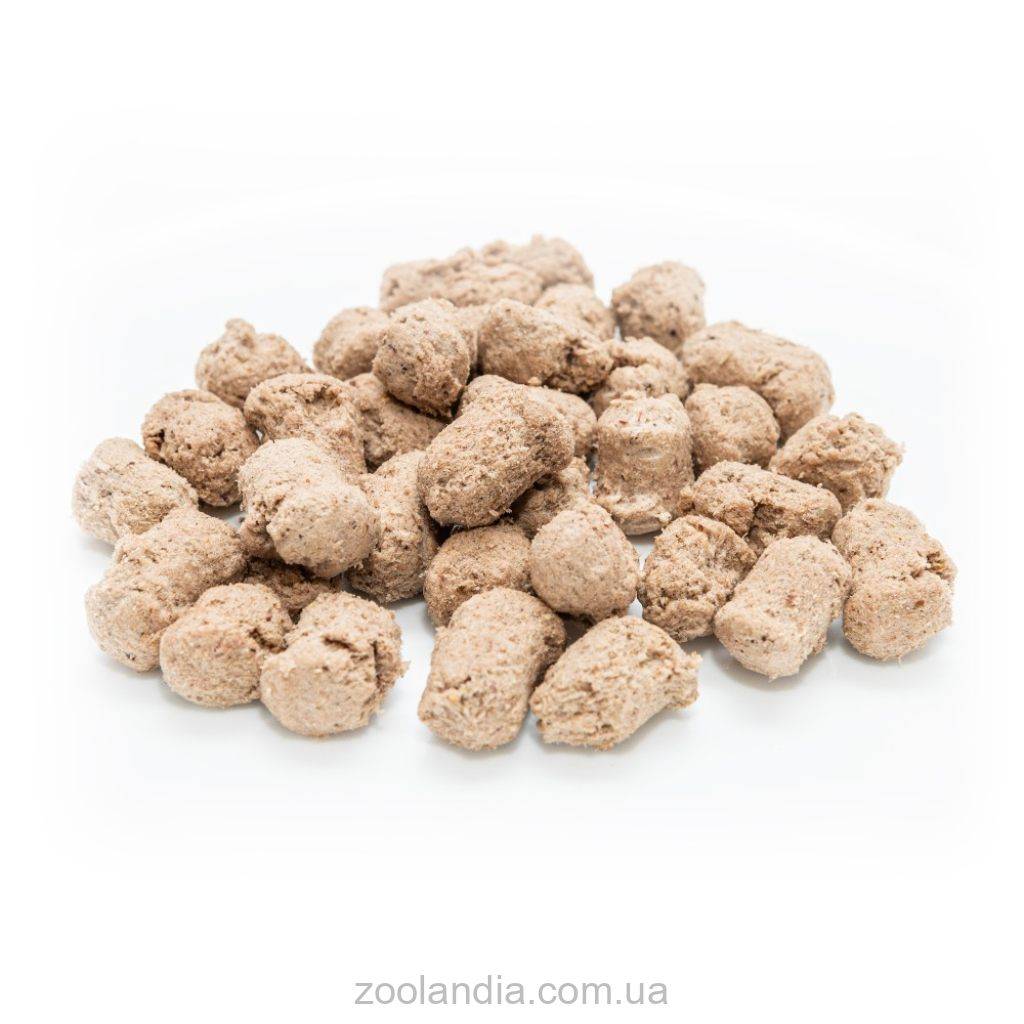 Рекомендации по кормлению: подавайте каждый день с сухим кормом для улучшения вкуса. Это лакомство не является заменой полноценного рациона. Обратите внимание, что пищевая ценность 100 г лиофилизированного продукта эквивалентна 300 г свежего сырого мяса.