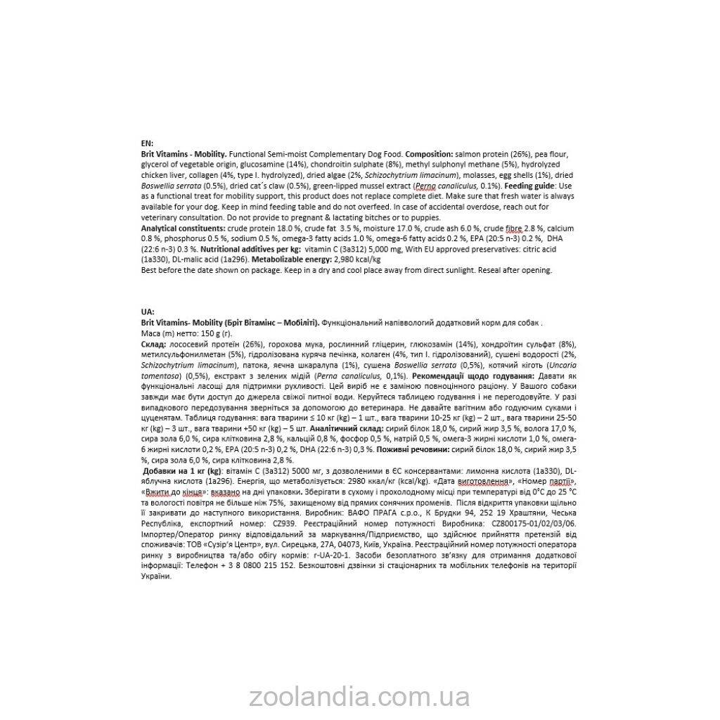 Рекомендации по кормлению: давать как функциональное лакомство для поддержания подвижности. Этот продукт не заменяет полноценный рацион. У вашей собаки всегда должен быть доступ к источнику свежей питьевой воды. Следуйте таблице кормления и не перекармливайте. В случае случайной передозировки обратитесь за помощью к ветеринару. Не давайте беременным или кормящим собакам и щенкам.