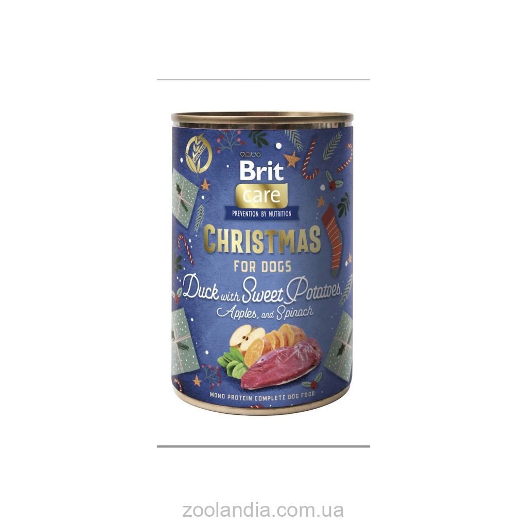 Тогда в качестве главного блюда выберите влажный корм Brit Mono Protein Christmas Duck – рождественский ужин с уткой, сладким картофелем, яблоками и шпинатом.