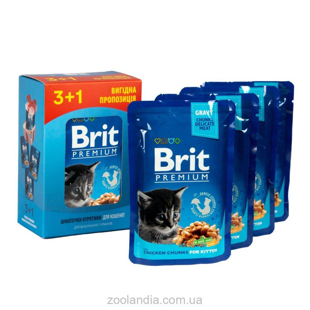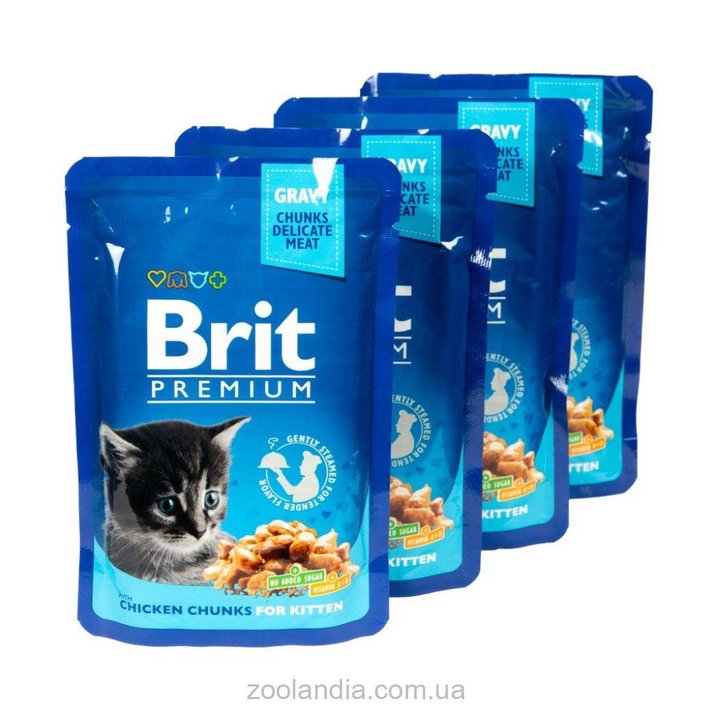 В набор входят паучи Brit Premium Cat pouch Chicken Chunks for Kitten с курицей, 4 шт. х100 г