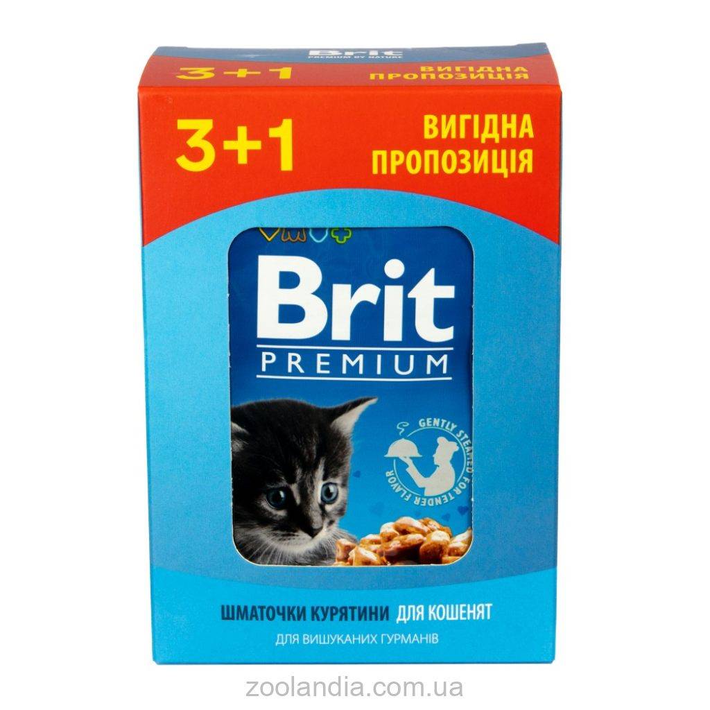Brit Premium Cat pouch Chicken Chunks for Kitten – полноценный влажный корм премиум-класса для котят.