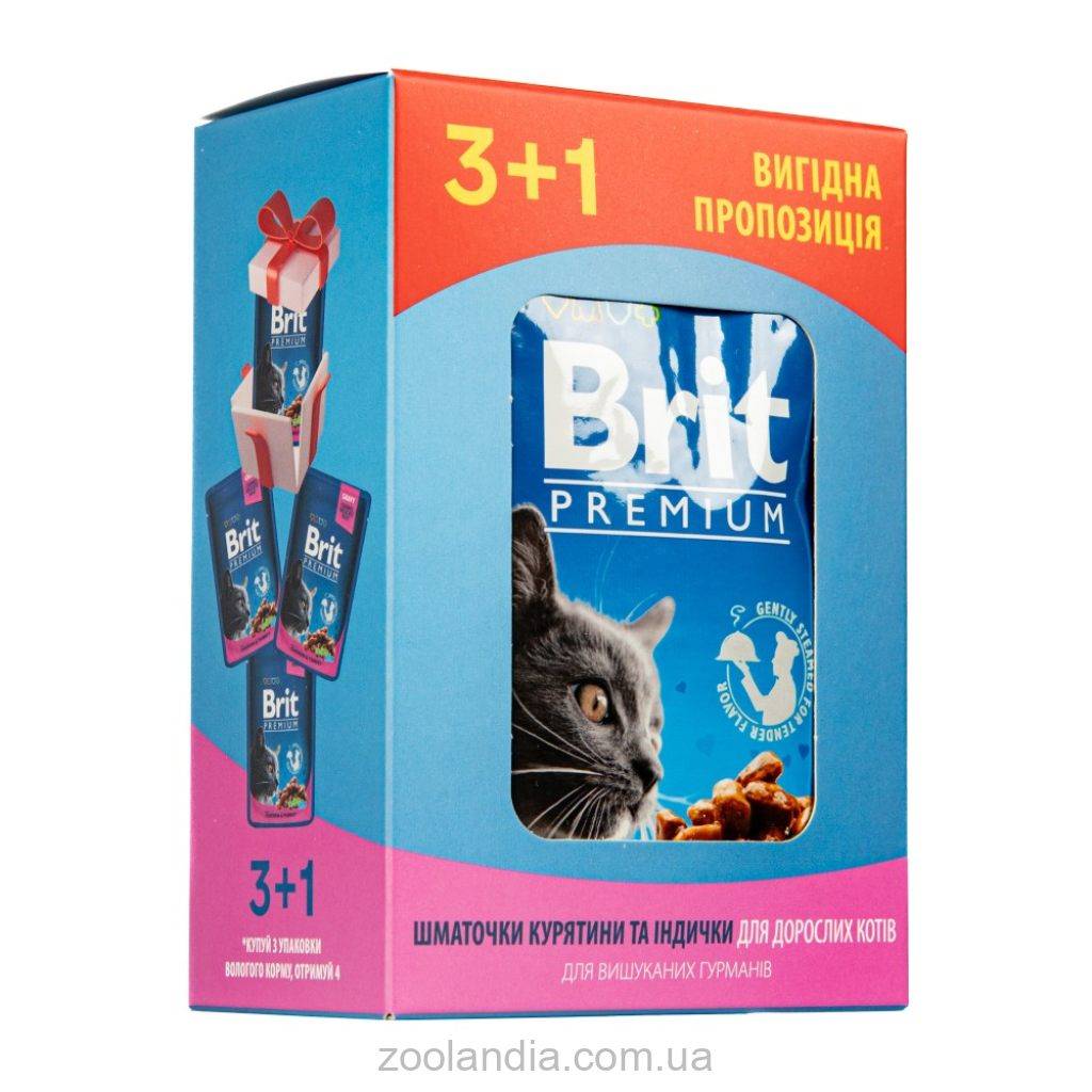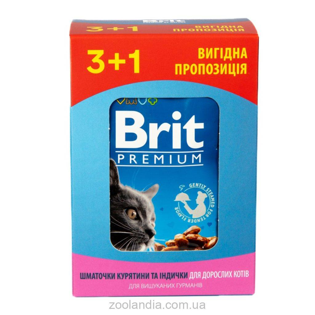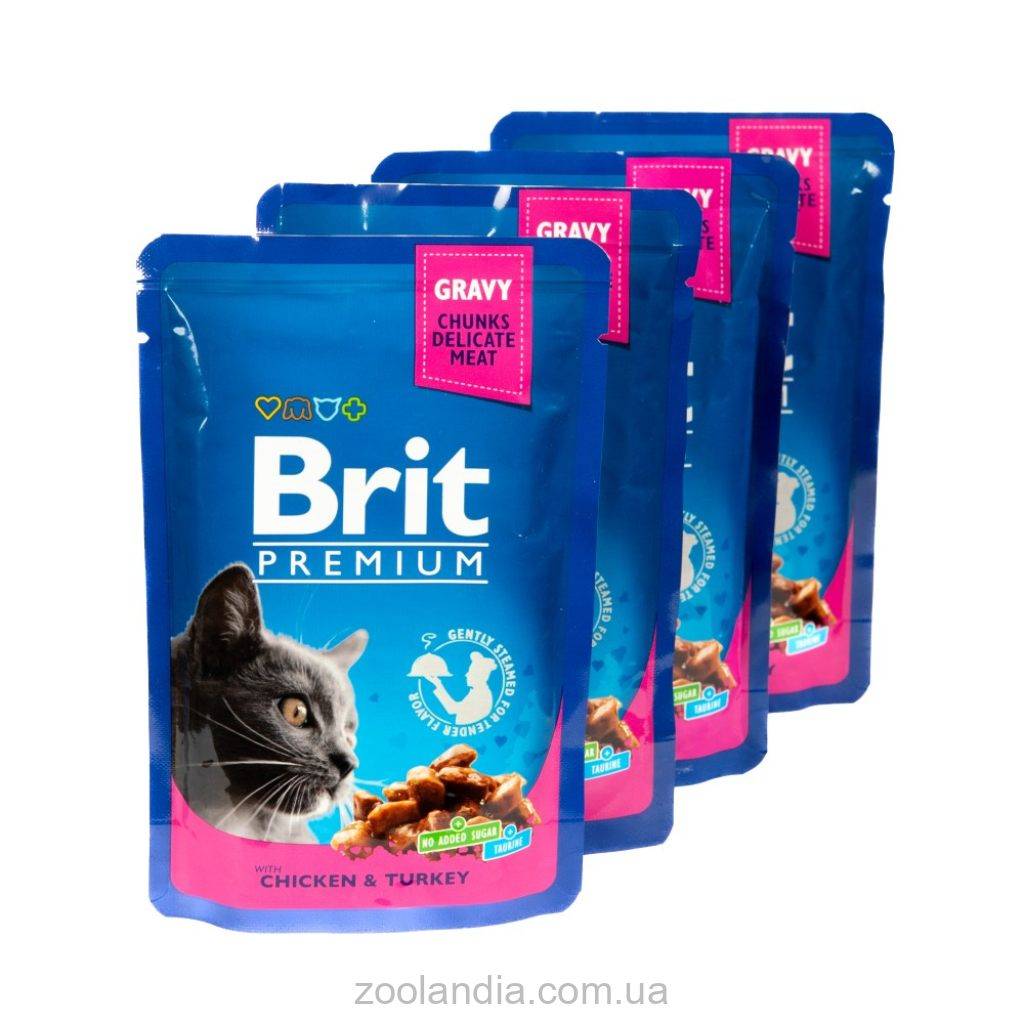 В набор входят паучи Brit Premium Cat pouch Chicken & Turkey с курицей и индейкой, 4 шт. х100 г
