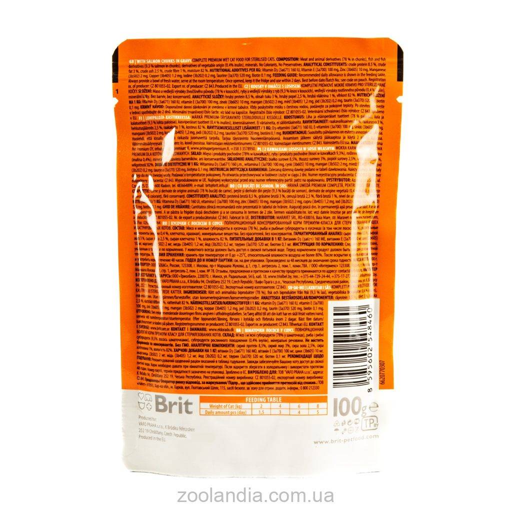 Brit Premium Cat Pouch кусочки лосося в соусе – это полнорационный влажный корм премиум-класса, созданный специально для удовлетворения всех пищевых потребностей стерилизованных кошек. Этот продукт отлично учитывает естественные предпочтения стерилизованных питомцев и отвечает их специальным пищевым потребностям.