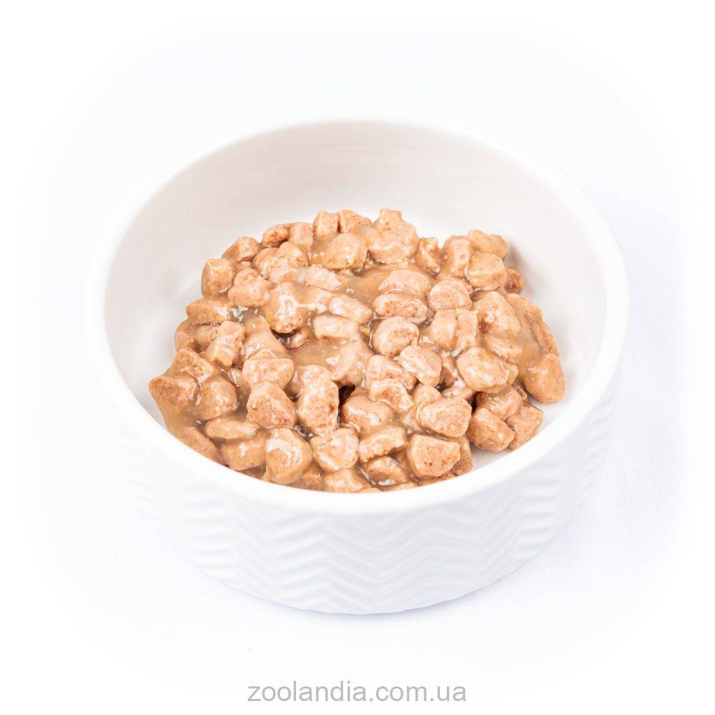 Состав: мясо и мясные субпродукты (78% в кусочках), рыба и рыбные субпродукты (9,3% лосось кусочками), субпродукты растительного происхождения (0,4% инулин), минеральные вещества. Не содержит красителей и консервантов. Без ГМО.