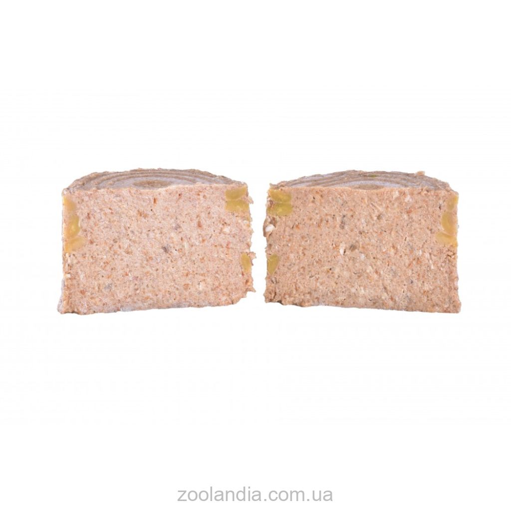 Состав: лосось (55%), зеленый горошек (3%), пивные дрожжи (2%), гороховая мука, лососевое масло (2%), лигноцеллюлоза, монтмориллонит (0,5%), сушеные водоросли (0,5% Ascophyllum nodosum), маннанолигосахариды (0,012%), β-глюканы (0,01%), фруктоолигосахариды (0,008%), юкка Шидигера (0,008%), сушеная облепиха (0,006%).