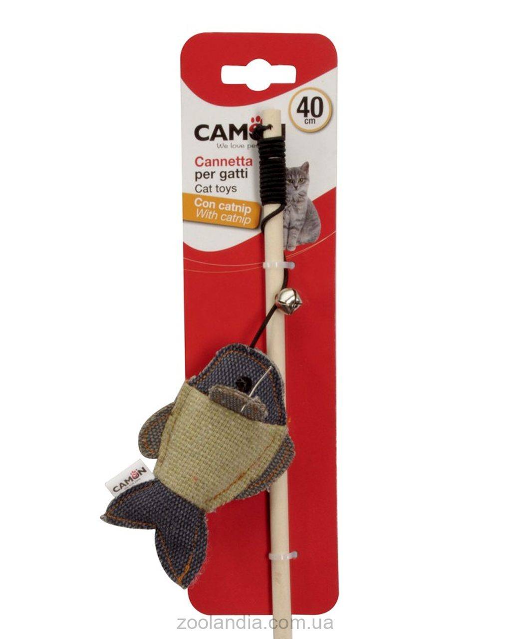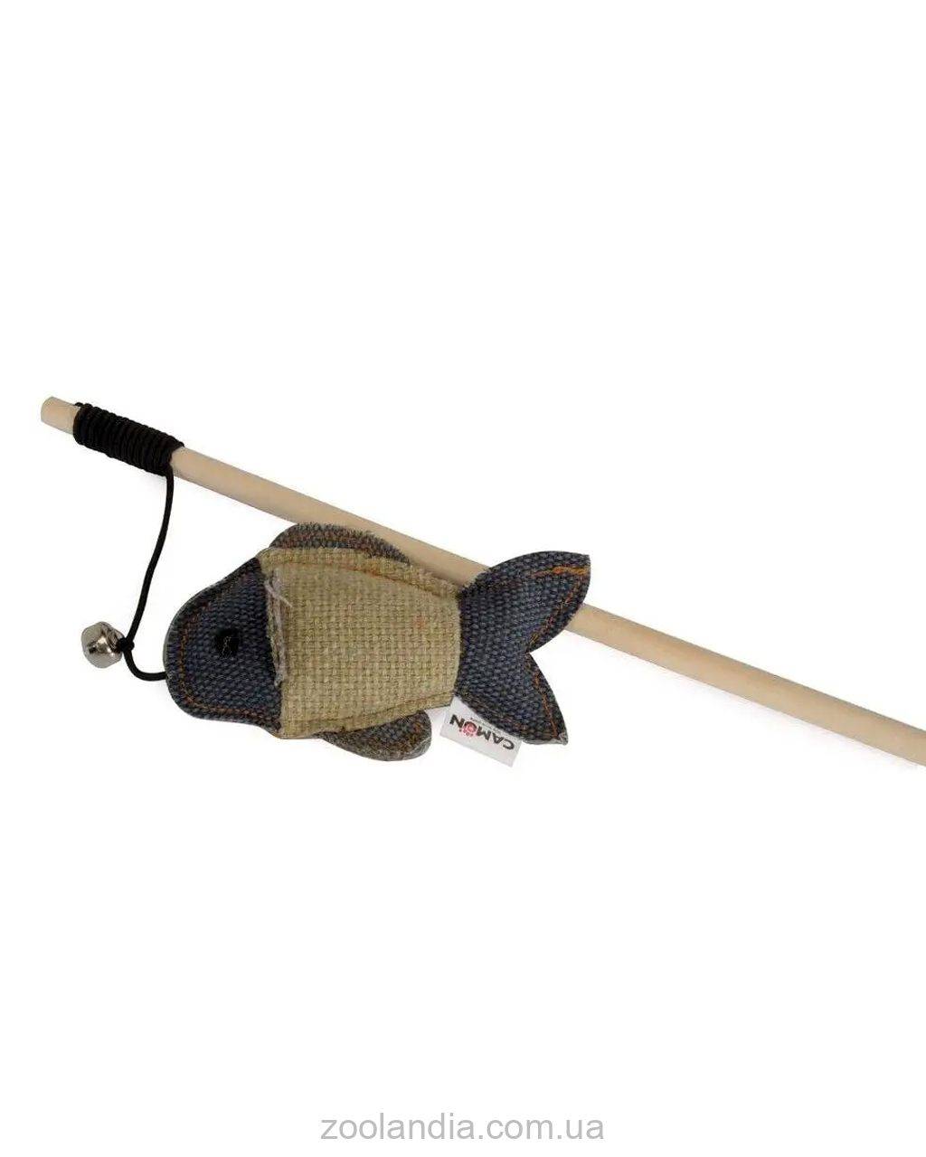 Красивая игрушка для кошек в форме деревянной трости с рыбкой из хлопка и полиэстера. Рыба содержит аромат кошачьей мяты.