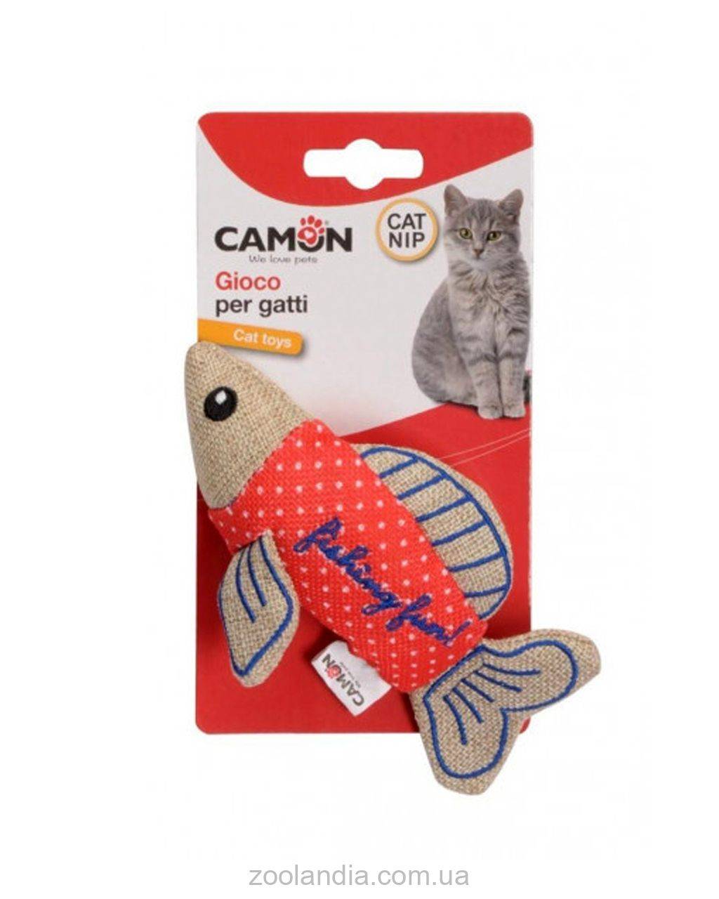 Веселая игрушка для кошек в форме красочной рыбки.