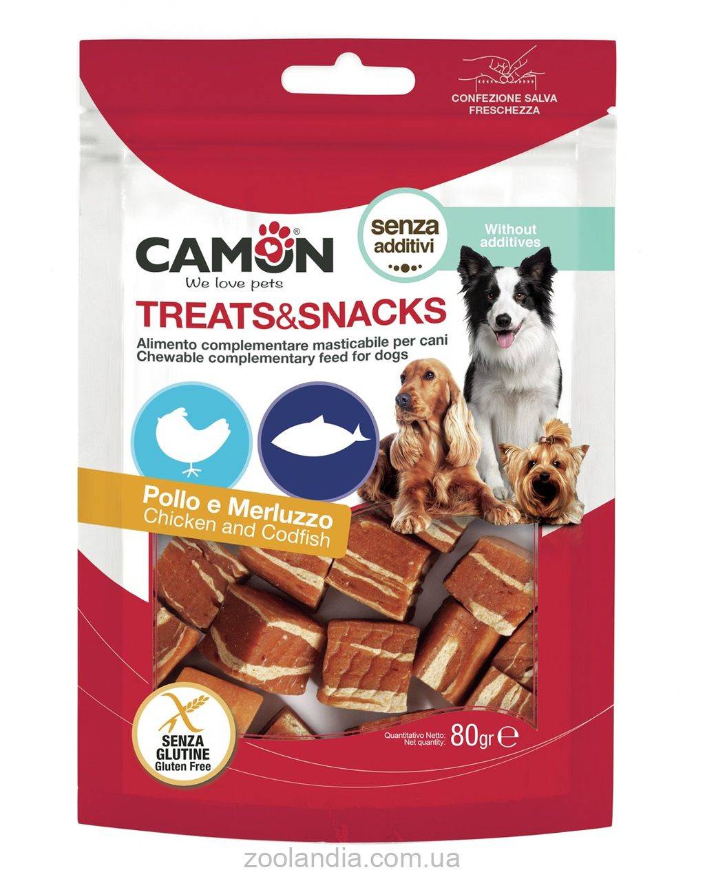 Вкусные кубики для взрослых собак из курицы и трески без добавок. Удобная закрывающаяся упаковка, сохраняющая свежесть.
