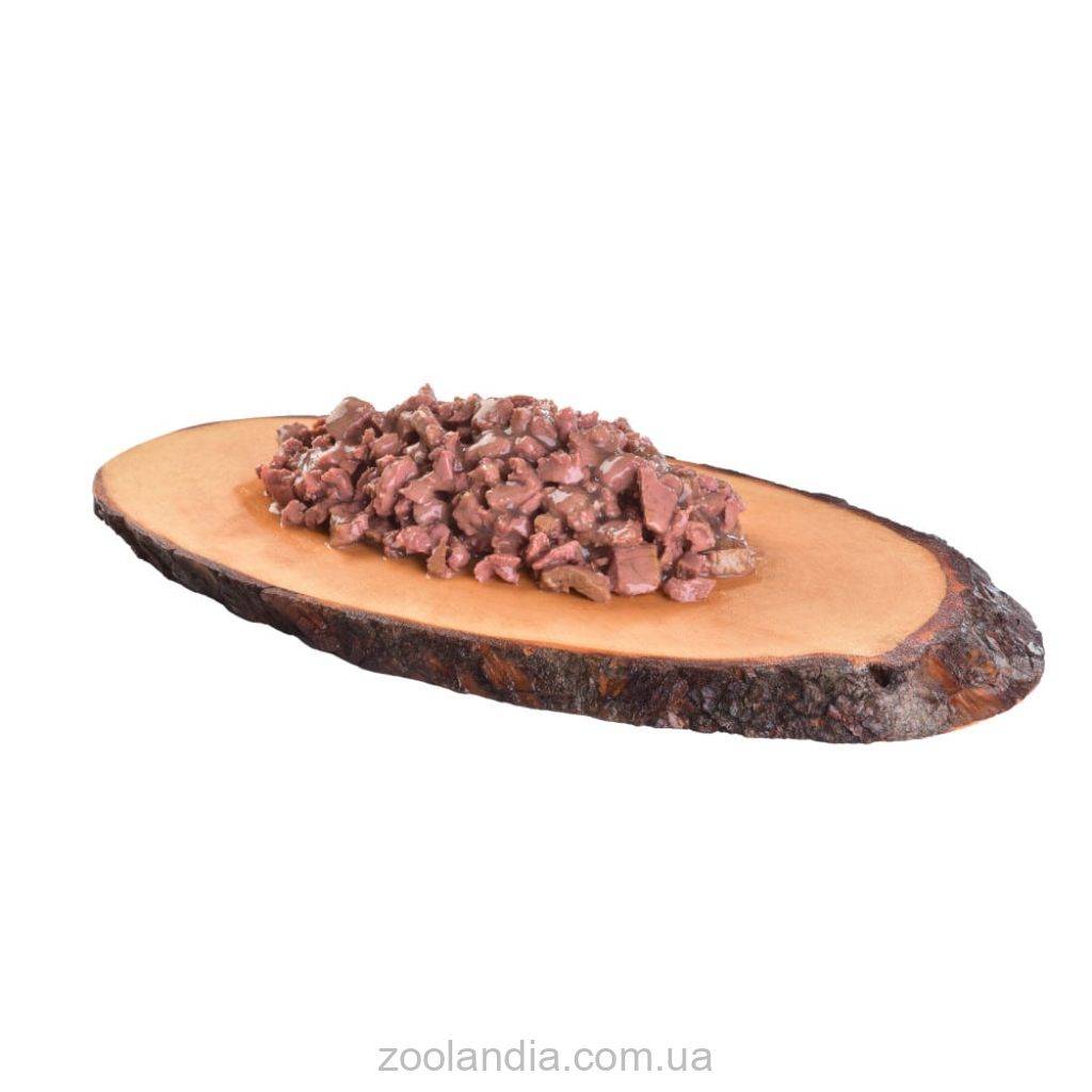 Состав: 85% мясное филе (71% курица, 14% форель), 12% бульон, 1% эхинацея, 1% льняное масло, 0,5% минералы, 0,5% растительный крахмал.