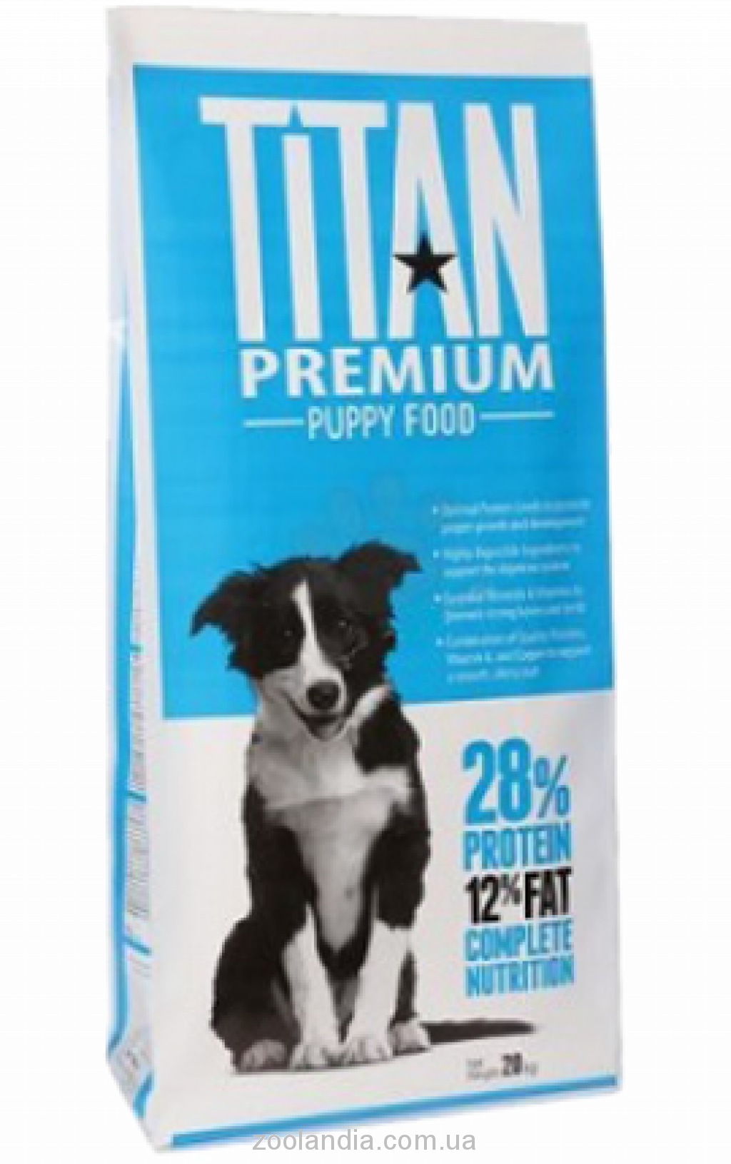 Корм TITAN PREMIUM Puppy Dog Food содержит оптимальное количество белка, необходимого для правильного развития и роста щенка.