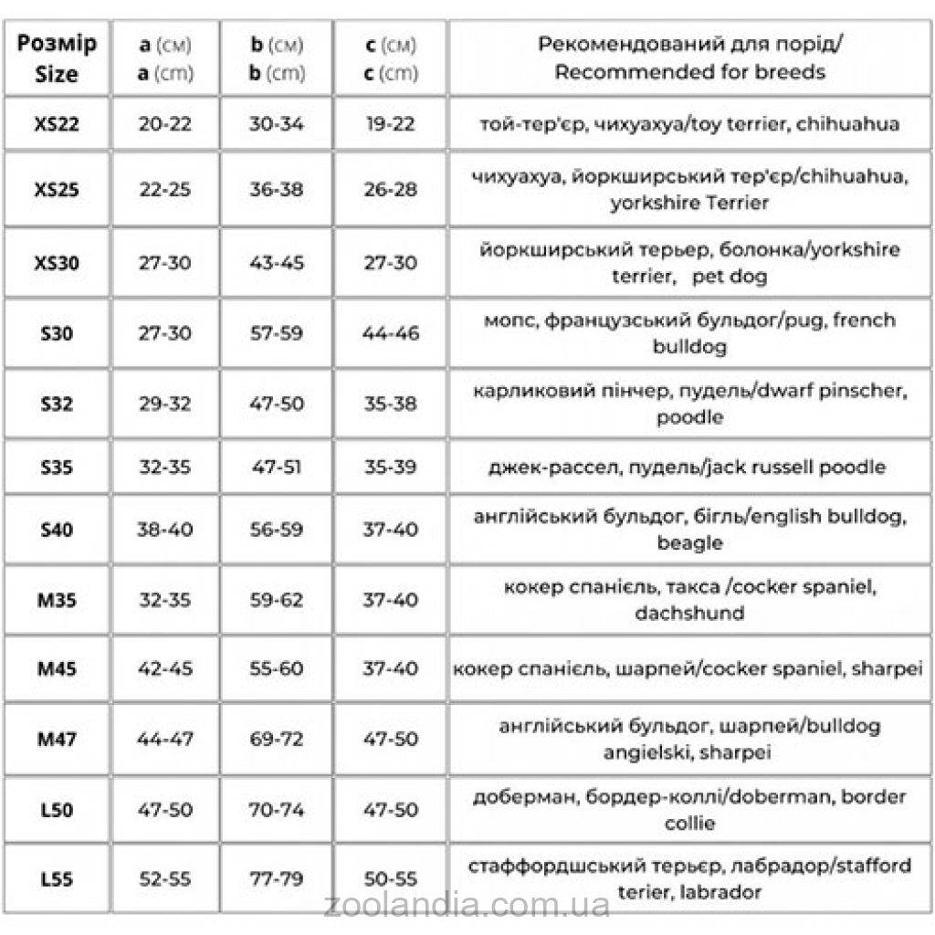 Для выбора подходящего размера одежды для вашего питомца, измерьте длину тела, обхват шеи и груди (наиболее широкую часть грудной клетки, непосредственно за передними лапами). Можно воспользоваться разделом "Рекомендованные породы" на фотографии размерной таблицы. Просто найдите соответствующую породу и сравните указанные измерения с физическими параметрами вашего питомца.