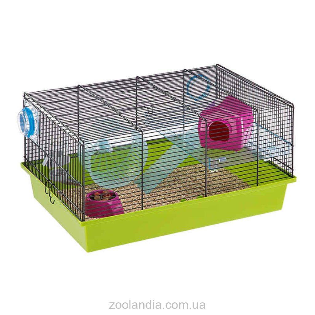 Для облегчения уборки клетки предусмотрены боковые защелки, соединяющие верхнюю и нижнюю части. Сняв верхнюю часть, вы легко и быстро сможете провести чистку. Клетка оснащена всем необходимым для уюта ваших питомцев, включая место для сна, кормушку, бутылочку для воды и пластиковое колесо для физической активности. Также в клетке предусмотрены отверстия для присоединения пластиковых труб, создавая дополнительные игровые возможности.