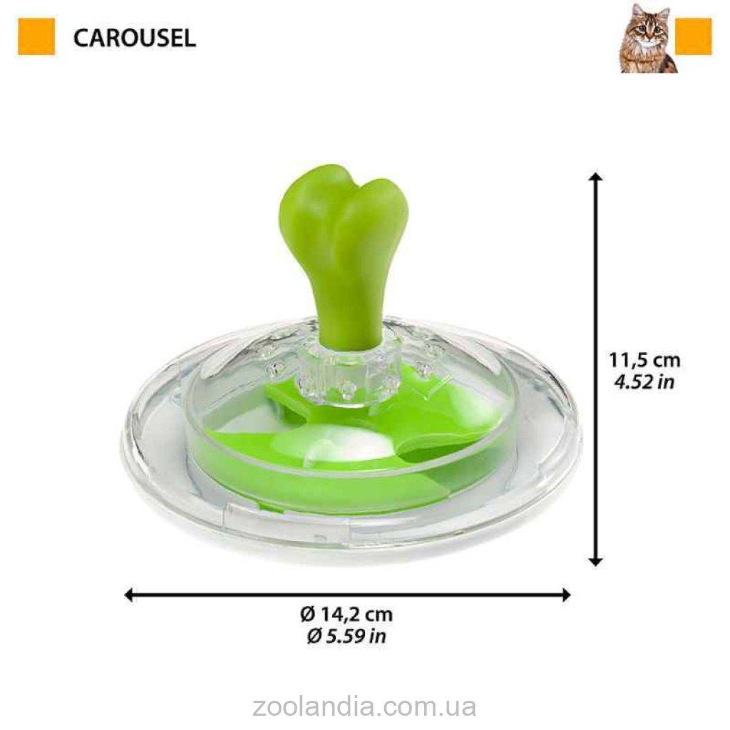 Карусель — это занимательная интерактивная игрушка для собак и кошек: она помогает вашему питомцу пережить моменты скуки, стимулирует любопытство, развивает ловкость, обеспечивая ему физические и умственные нагрузки, которые сохранят его здоровье. Игрушка-диспенсер для печенья катится и подпрыгивает, в ней можно хранить печенье различной формы, преподнося вашему четвероногому другу приятные и вкусные сюрпризы. Он изготовлен из прочного пластика и имеет прозрачную крышку, позволяющую вашему любопытному питомцу увидеть соблазнительную еду, которую вы в него положили.