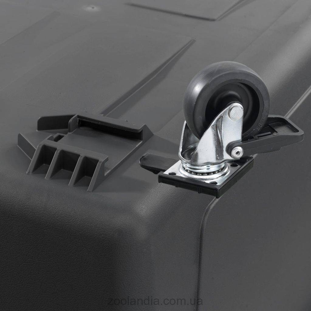 Комплект включает в себя пару вращающихся колес и пару не вращающихся колес, оборудованных тормозами. Установив эти колеса, вы сможете легко перемещать переноску с вашим домашним питомцем за собой, что особенно удобно при большом весе животного. Эти колеса идеально подходят для переносок средних и крупных собак.