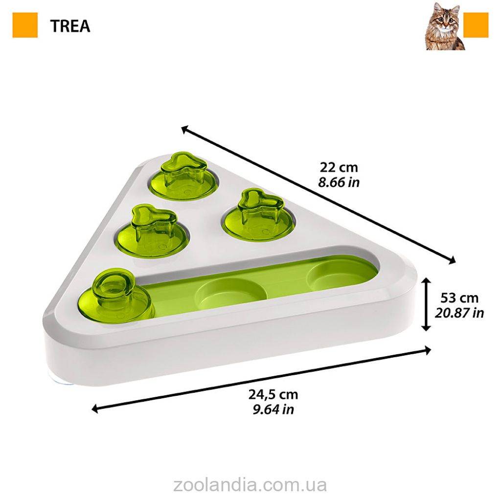 Например, Trea — это игрушка для активного отдыха с тайниками для сухого корма, которая стимулирует хищнический инстинкт вашего питомца и заставляет его есть медленнее.