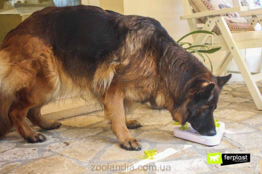Он изготовлен из прочного пластика и имеет нескользящие присоски снизу для обеспечения максимальной устойчивости. Попробуйте спрятать в нем соблазнительные лакомства и закрыть раздвижные дверцы: игра с ним вместе с четвероногим другом укрепит ваши с ним отношения!