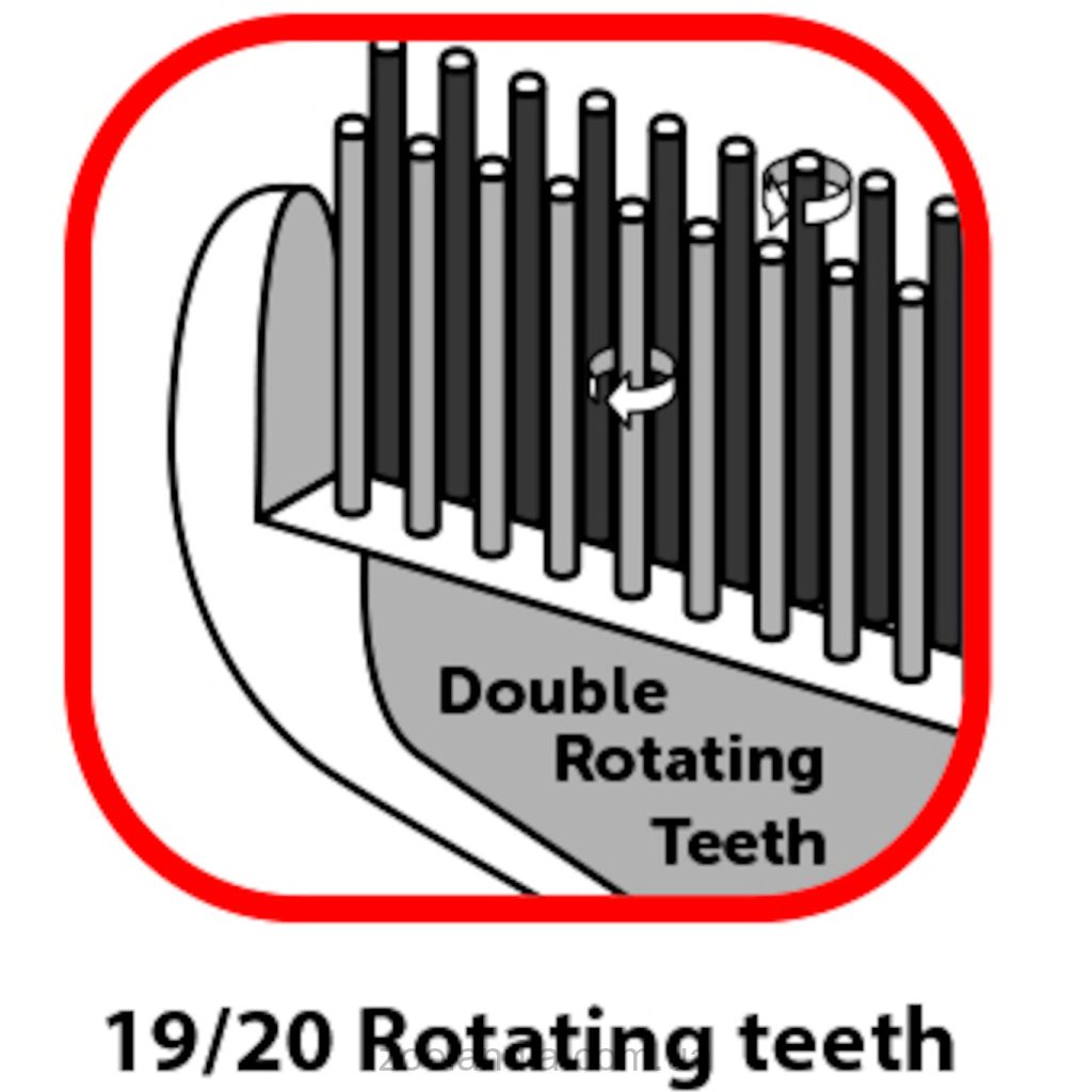 • Вращающиеся зубцы распутывают узлы в подшерстку, не дёргая, и удаляют рыхлые волосы