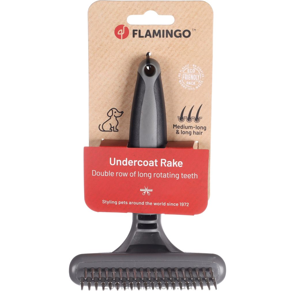 Flamingo (Фламинго) - Грабли двухрядные для вычесывания подшерстка у собак, 19/20 зубца, 17,5х11,5 см