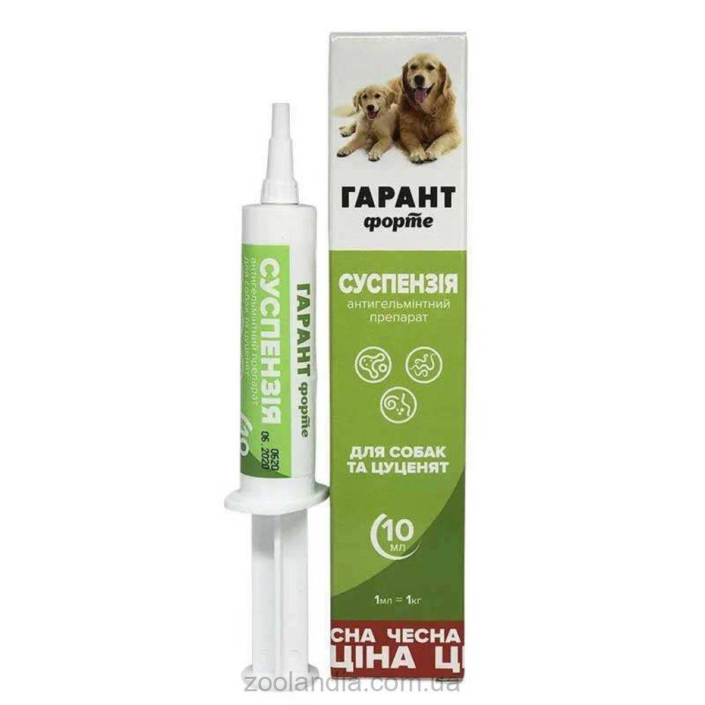 Высокоэффективный антигельминтный препарат для собак и кошек суспензия Гарант Форте эффективно справляется с круглыми и ленточными гельминтами на всех стадиях жизни. Препарат относится к малоопасным для животного. Подходит как для собак, так и для кошек всех возрастных групп.