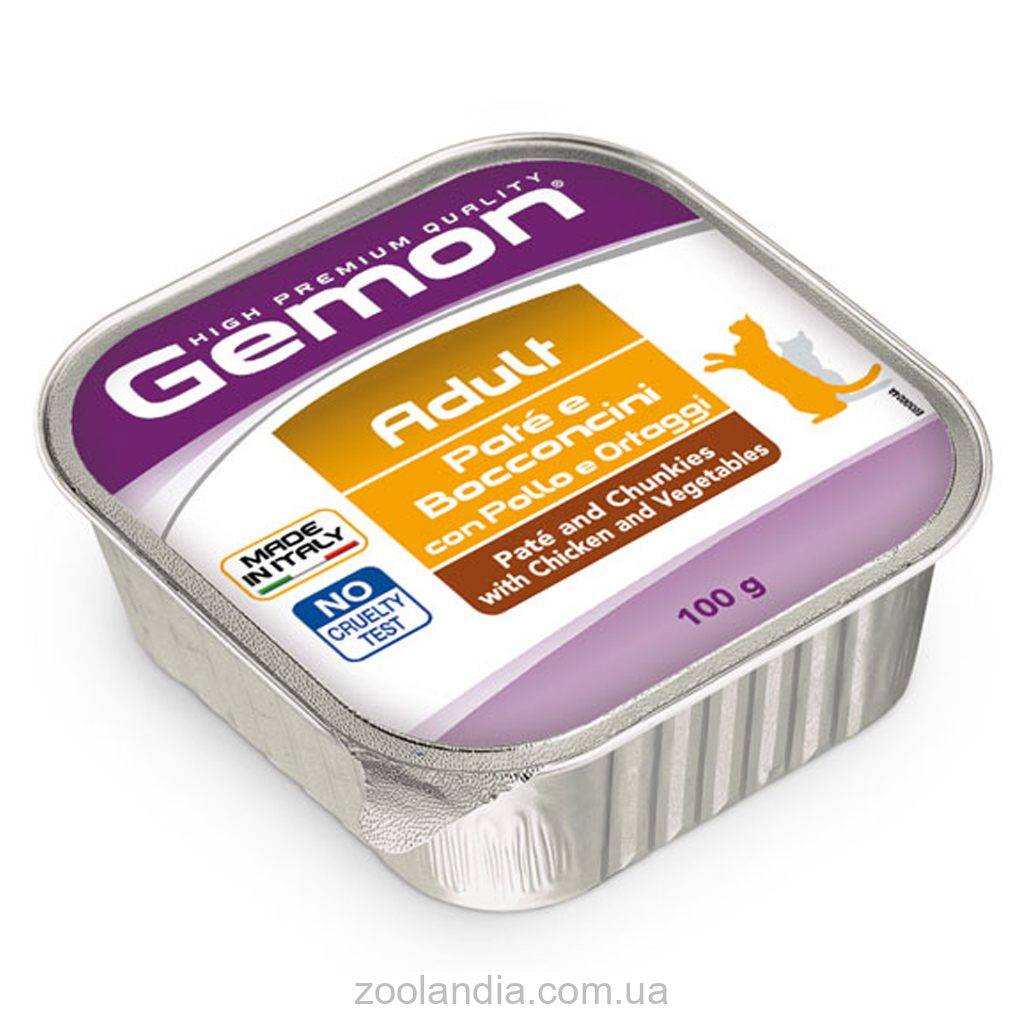 Несколько преимуществ консервов для взрослых кошек Gemon Cat Adult Pate Chunkies with Chicken and Vegetables: