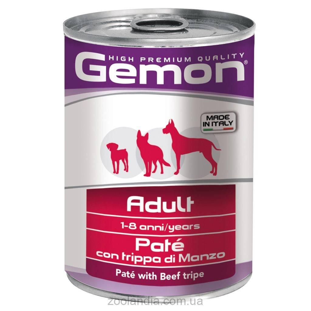 Gemon Paté with Beef Tripe - это итальянский влажный паштет для собак на основе говядины. Этот продукт подходит для взрослых собак в возрасте от 1 до 8 лет всех пород. Вы можете использовать эти вкусные консервы как основное питание для вашего любимца или как аппетитную добавку к основному рациону. Мясные хлопья изготовлены из свежего мяса говядины, что соответствует высоким стандартам качества, предъявляемым к производству продуктов питания для людей, включая детское питание.