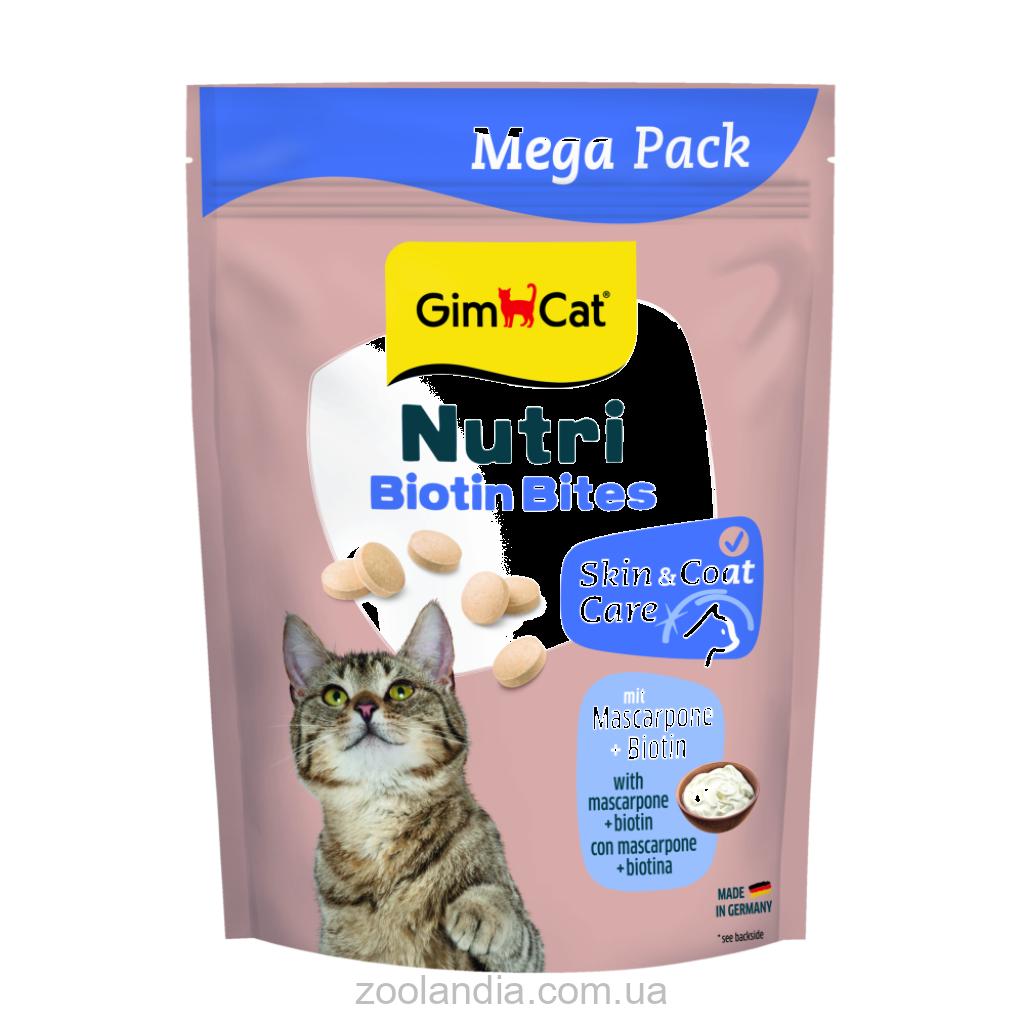 GimCat Nutri Biotin Bites с маскарпоне — это восхитительная закуска, которую можно катать по полу и играть с ней. Высокое содержание биотина поддерживает блеск, интенсивность цвета и эластичность кожи и шерсти.
