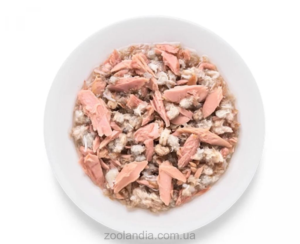 Ингредиенты: 45% филе тунца, 30% креветки, 25% собственный сок, 0% зерновых.