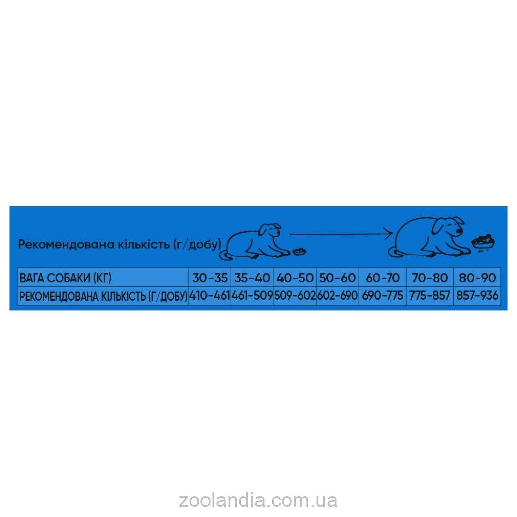 | Вес собаки (кг) | 30-35 | 35-40 | 40-50 | 50-60 | 60-70 | 70-80 | 80-90 |
