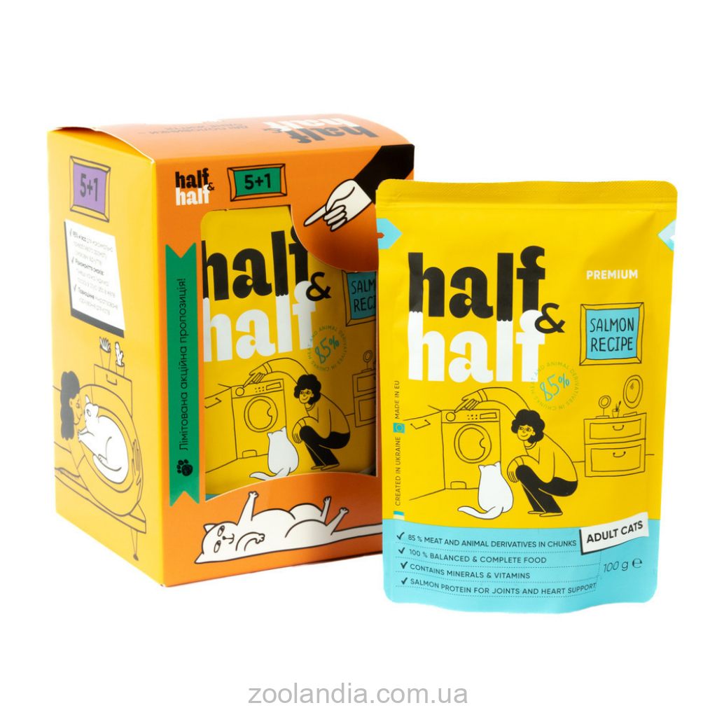 Оптимальный по калорийности влажный рацион Half&Half станет отличным дополнением к сухому корму для взрослых кошек, поддержанию их активности и удовлетворит энергетические потребности.