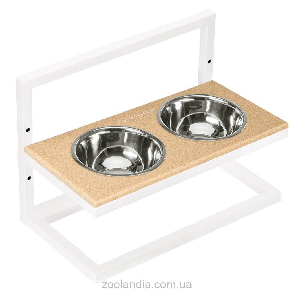 Harley & Cho (Харли энд Чо) Beige Stone Lift + White миски на подставке с регулируемой высотой для собак