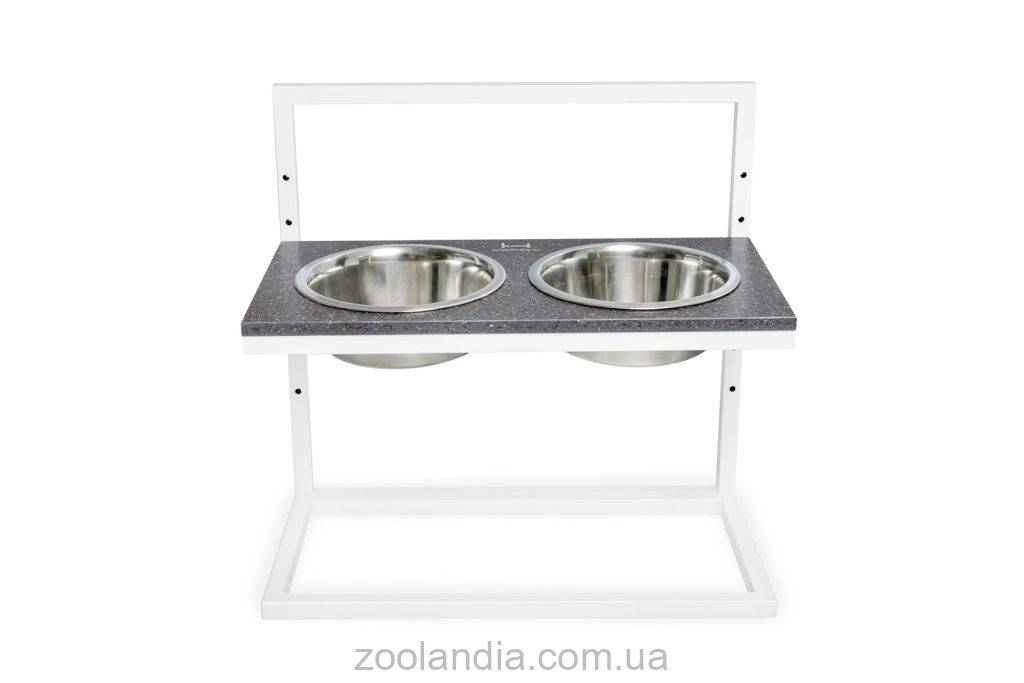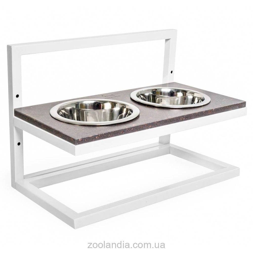Harley & Cho (Харли энд Чо) Brown Stone Lift + White миски на подставке с регулируемой высотой для собак